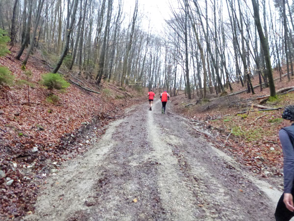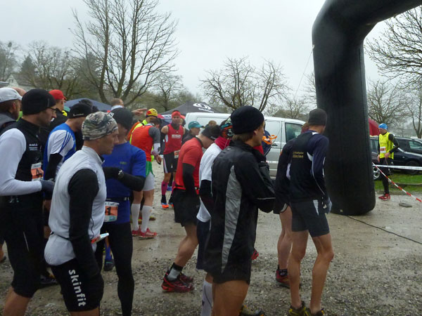 Für beide Trails gibt es unterschiedlich Startzeiten. Die „Experten“ werden um 10 Uhr losgelassen, 10 Minuten später folgen die „Beginner“. Den ersten Kilometer müssen wir bis zur Waldgrenze auf Teer zurücklegen mit einem ätzend nasskalten Gegenwind. Dann geht’s rein in den Wald und sofort ändern sich die Bedingungen. Der Wind hat keine Chance mehr und wir bekommen endlich auch superweiche Trails unter die Füße. In einem stetigen Wechsel zwischen leichten und gefälligen Steigungen und Gefällen durchqueren wir diesen ersten Waldabschnitt.
