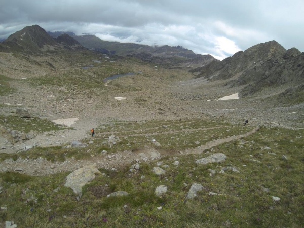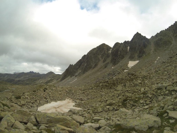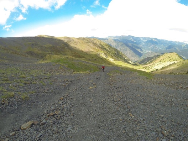 Das Höhenprofil verkündete nach dem Aufstieg zum ColladaPessons (ca 2900 Meter) einen Abstieg von 900 Höhenmetern auf 9 km. Doch dieser Downhill ist sehr schmerzhaft für Knochen, Bänder, Sehnen und Muskeln. Hier kann man zu Beginn des Abstieges doch das eine oder andere Problem mit der Höhenangst oder einer drohenden Sturzgefahr bekommen, ehe es nach der sehr steilen Partie nervenaufreibender ist, die riesigen Steinfelsen zu erklimmen bzw. zu passieren. Wenn man sich überlegt, dass größte Teile der Wettkampfstrecke auf einem Wanderweg stattfinden, kann man nur sagen: „ Repekt vor dem, der in den Pyrenäen wandern geht“.