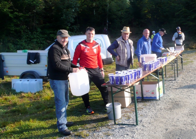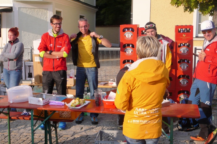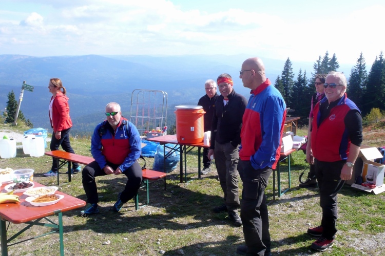Steil aber schön - auf Treppen steigen wir so 150 hm hoch zum Gipfel. Und hier genauso: plötzlich ist man oben. Viel los hier, mächtig viel. Die Seilbahn kommt von der anderen Seite, alle sehen ausgeruht aus. Gedränge am Gipfelkreuz, ein Selfie nicht möglich, also weiter. Neben der Eisensteinhütte unser VP3. (Erst?). Ein ruhiger Tag für die Bergwacht, bisher kein Einsatz. Hier sehe ich, was ich als Cola-Ersatz bisher getrunken habe: eine aus der Dampfbierbrauerei Zwiesel stammende Köstlichkeit. Gibt‘s mit und ohne. Mit macht irgendwie bessere Laune, ohne ist wie Iso mit ungewöhnlichem Geschmack. (Dies ist nur die subjektive Ansicht des Autors, trinkt doch, was ihr wollt...)