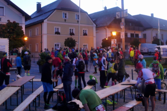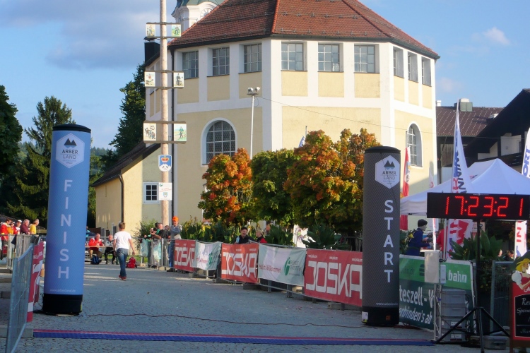 Auf Asphalt zu Tal, in den Ort, zur Kirche mit dem Marktplatz davor. Das Ziel. Die Freude vertreibt die Müdigkeit total. Glückwünsche überall, die markante Holzmedaille, etwas essen und trinken. Im letzten Sonnenschein klingt ein wunderbares Lauferlebnis aus. Also, an alles, was im Woid so läuft, 22.9.18 - ALUT 3.0 ruft euch!