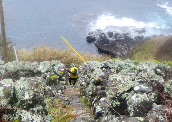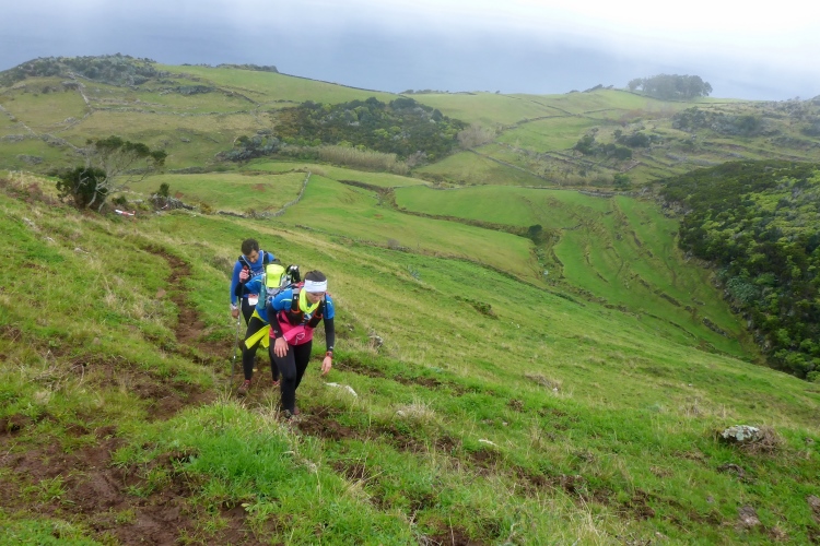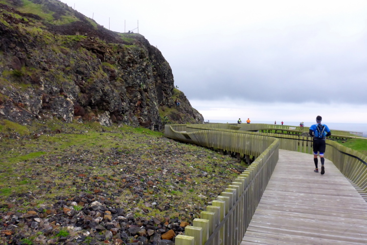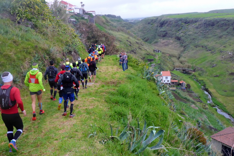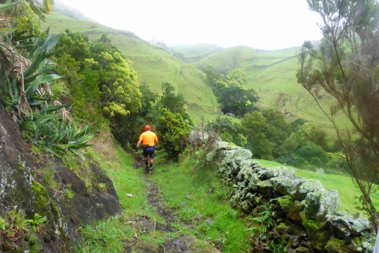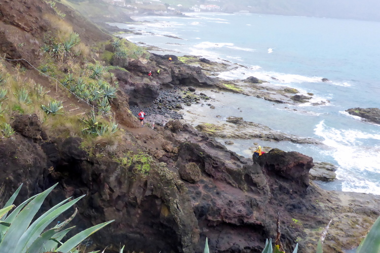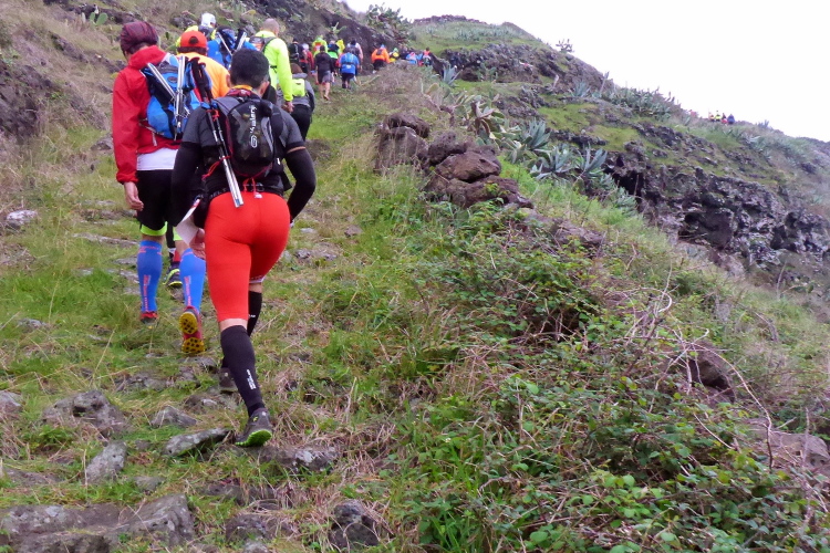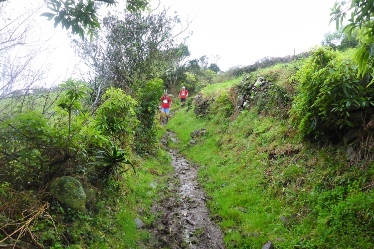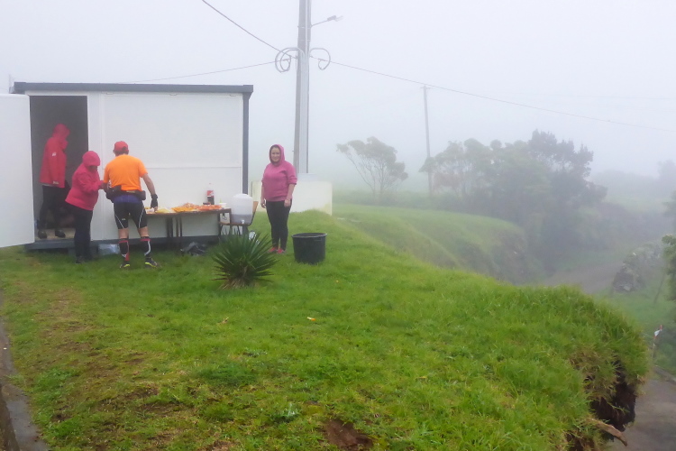 Die Strecke ist wie auf den Azoren gewohnt außerordentlich gut mit Flatterbändern in sehr geringem Abstand markiert. Hier kann man beim besten Willen nicht verloren gehen. Außerdem gibt es an sehr vielen Punkten entlang der Strecke Helfer, die auf uns aufpassen und jede Startnummer notieren.