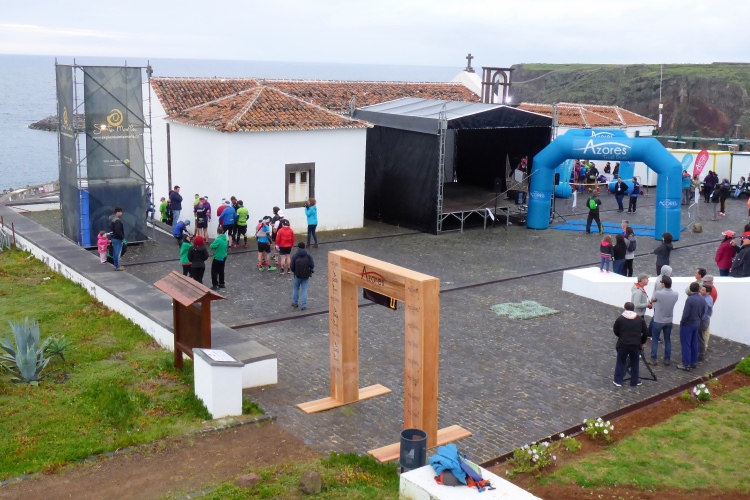 Zuerst fahren wir nach Anjos, dem Ort, an dem Kolumbus 1493 auf der Rückreise von Amerika das Gelübde erfüllte, hier in der Kapelle einen Gottesdienst abhalten zu lassen. Nahe des Denkmals für den Entdecker ist km 60 der Ultrastrecke. Danach sehen wir die Deserto Vermehlho, die rote Wüste, die durch den Abbau von bleihaltiger Tonerde entstanden ist. Am Freitag spaziere ich unter anderem entlang der ersten Kilometer der Trailstrecke und kann jetzt im Gegensatz zum Wettkampftag den Blick auf die Ostküste bei Sonnenschein fotografieren. Anschließend spaziere ich durch Vila do Porto, die älteste Stadt der Azoren, und gehe am Abend vom Hotel hinab zur Pastaparty in die Jugendherberge.