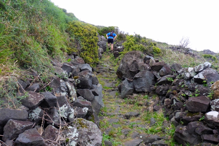 Auf der 97 Quadratkilometer großen Insel Santa Maria werden ein anspruchsvoller Marathon (40,9 km) mit 1985 hm Auf- und 1829 hm Abstieg, 76,3 km mit 3390 hm sowie ein nicht so steiler Halbmarathon mit 570 hm Auf- und 720 hm Abstieg angeboten. Die Ultradistanz folgt komplett dem rund um die Insel und zweitweise auch ins Binnenland führenden Wanderweg, die Marathonstrecke dem ersten Teil und der Halbmarathon dem Ende. Bei den Läufen auf den Azoren begeistert mich, dass sie nicht nur durch faszinierende Landschaften führen, sondern stellenweise auch technisch anspruchsvoll sind. Meine hohen Erwartungen werden auch beim Columbus Trail voll erfüllt. Jeder Trailrunner, der etwas Besonderes sucht, findet hier ein Paradies, das ihm große Prüfungen auferlegt.