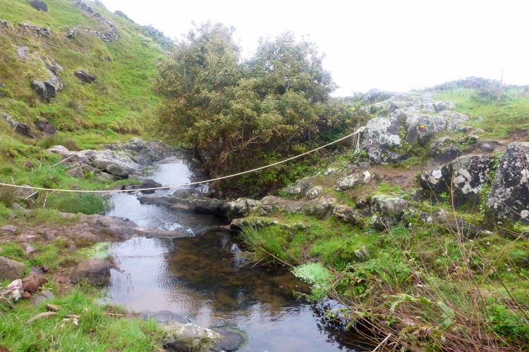 Im Sommer sind die Naturschwimmbäder bei Maia sehr beliebt. Am anderen Ende des Ortes führen nun wieder steile Treppen bergauf. Diese Weinberge bieten im Frühjahr sicher einen noch schöneren Anblick, wenn zwischen den schwarzen Mauern das frische Grün leuchtet. Dann erreiche ich den höchsten Wasserfall Portugals.