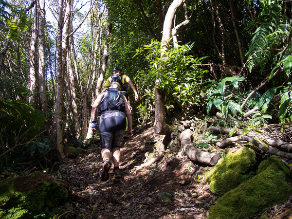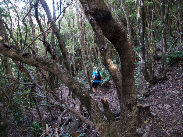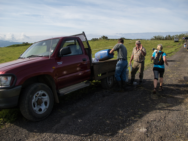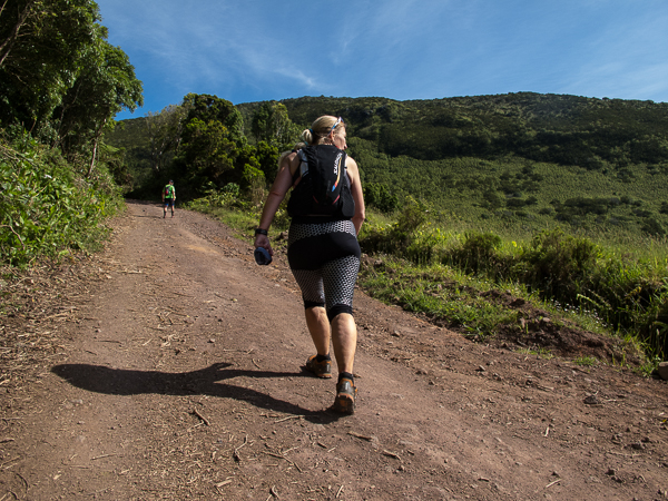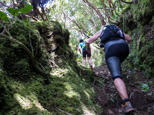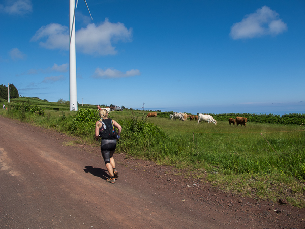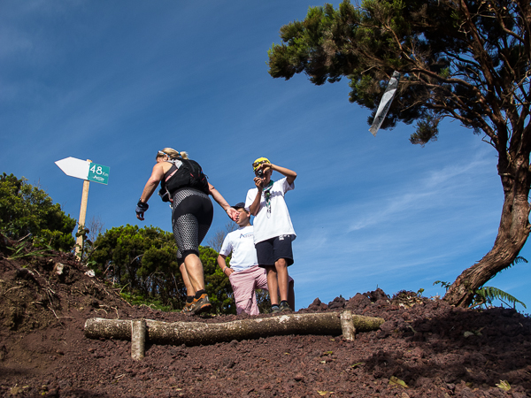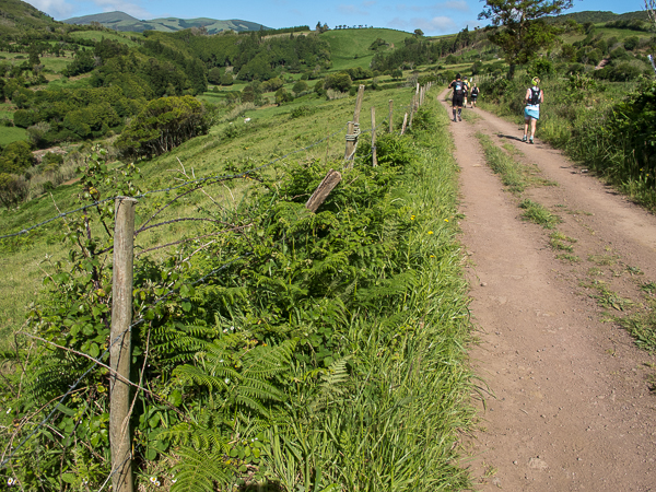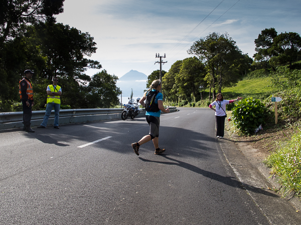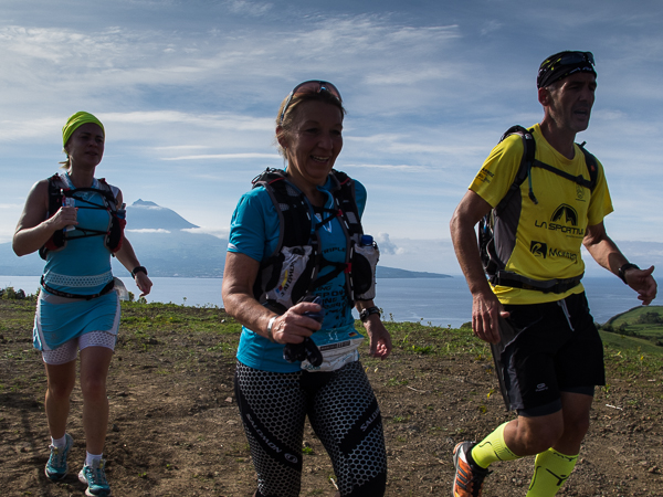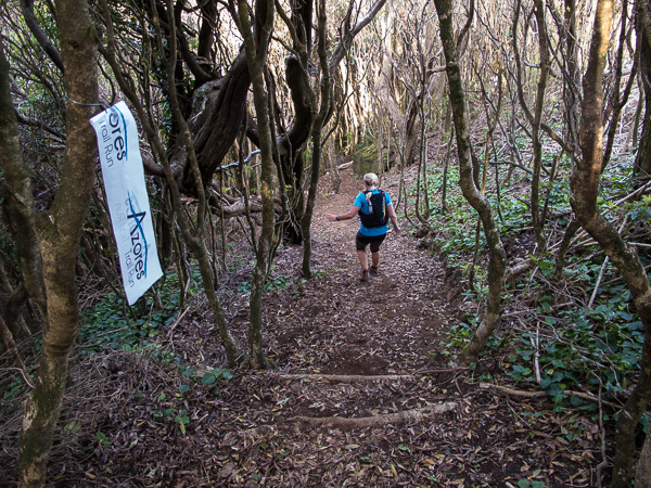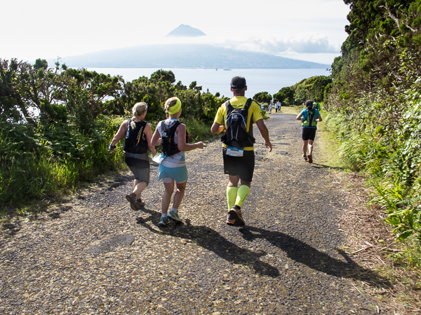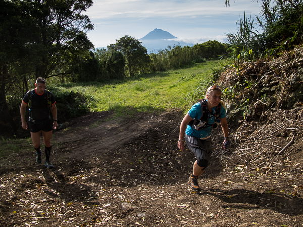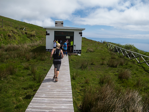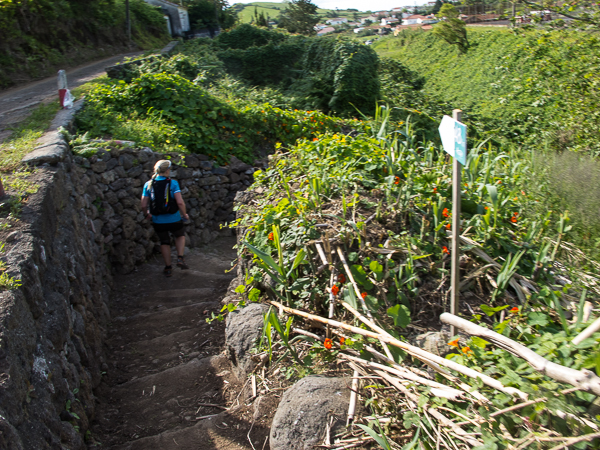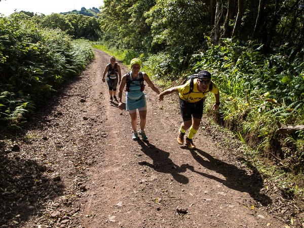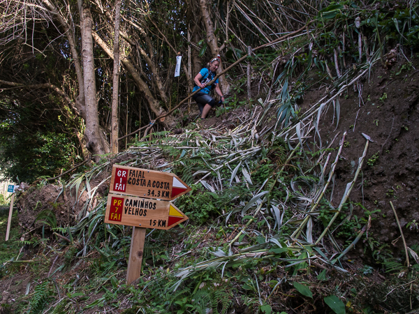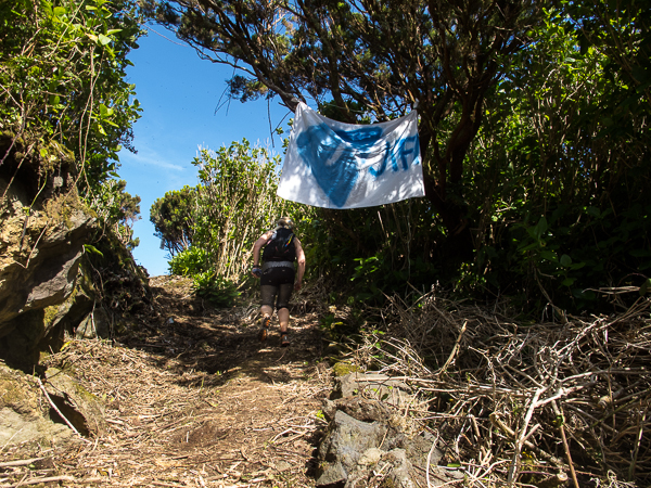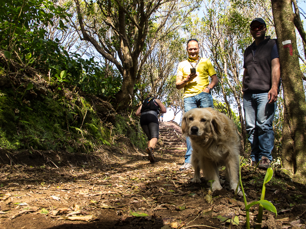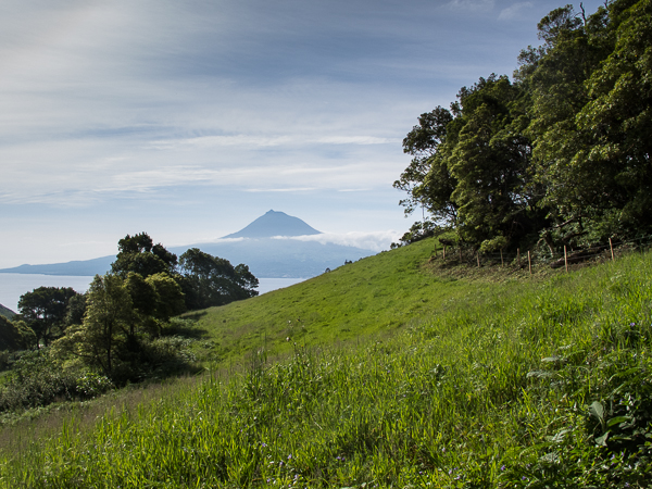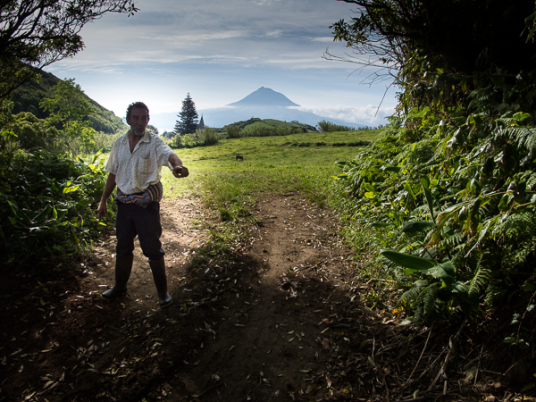 Der Weg wird dichter. Nur ein Pfad ist freigeschlagen, es sieht es aus, als hätte Gott sich mit der Axt ausgetobt. Am Weg steht einer von vielen Farmern, die geholfen haben, die historischen Wege kilometerweit freizuschlagen. Er lächelt, freut sich, fotografiert zu werden. Im Hintergrund lächelt der Pico – was für ein Postkartenmotiv. Weiter zeigt die Landschaft Faials ein Bild der Extreme.