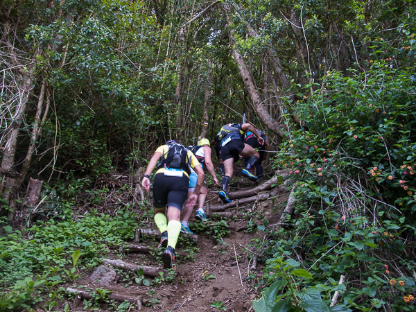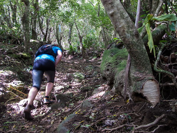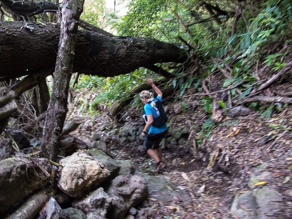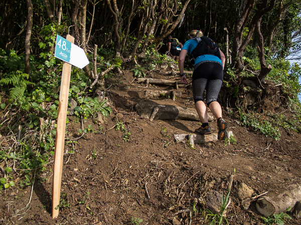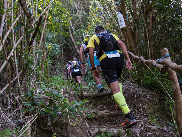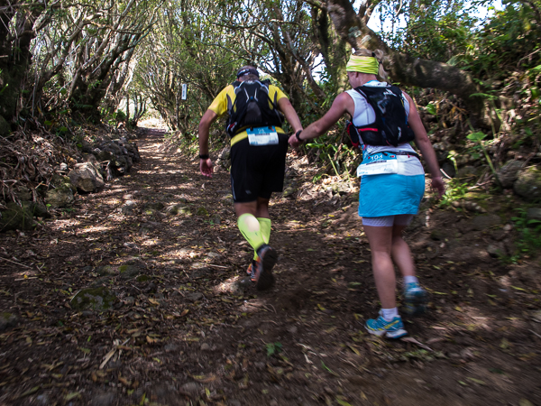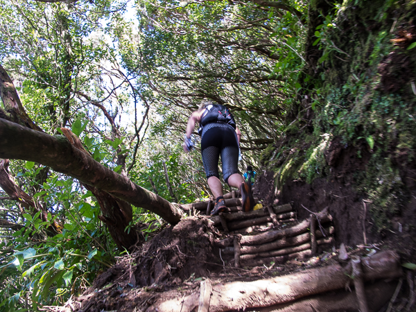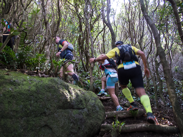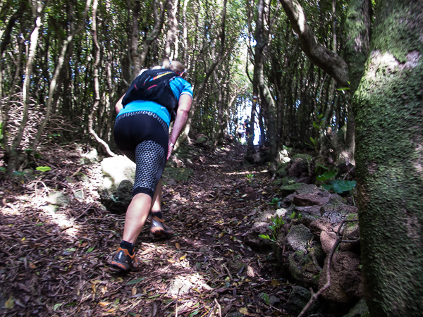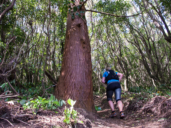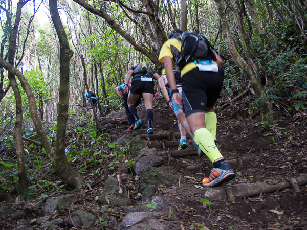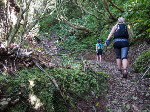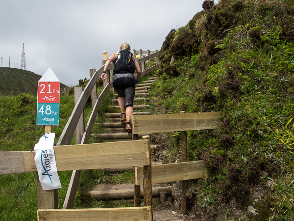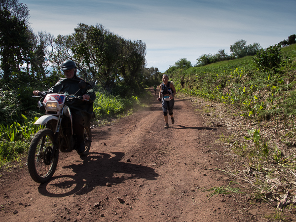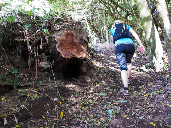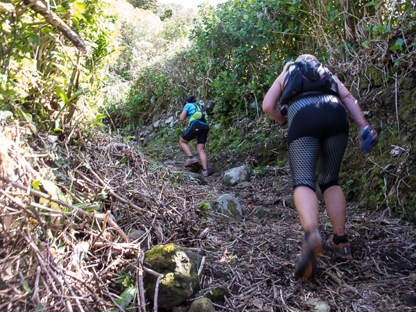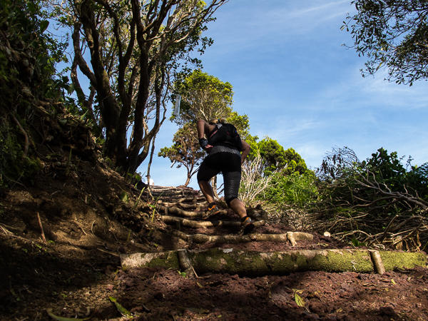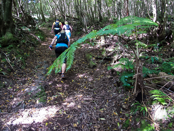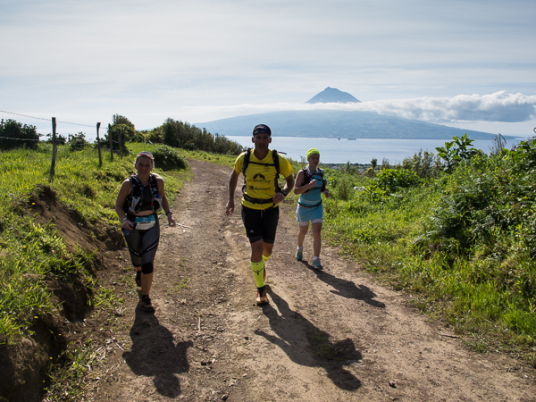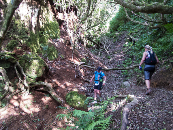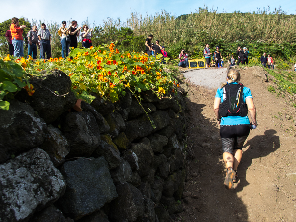 Der Weg wird dichter. Nur ein Pfad ist freigeschlagen, es sieht es aus, als hätte Gott sich mit der Axt ausgetobt. Am Weg steht einer von vielen Farmern, die geholfen haben, die historischen Wege kilometerweit freizuschlagen. Er lächelt, freut sich, fotografiert zu werden. Im Hintergrund lächelt der Pico – was für ein Postkartenmotiv. Weiter zeigt die Landschaft Faials ein Bild der Extreme.