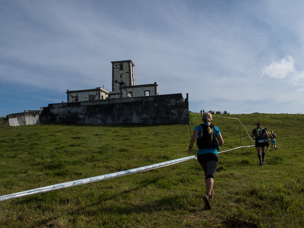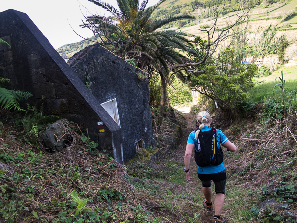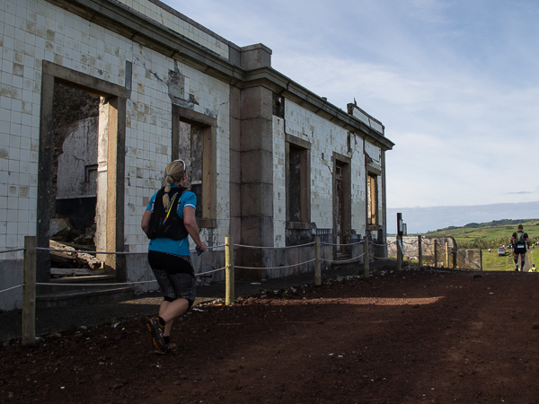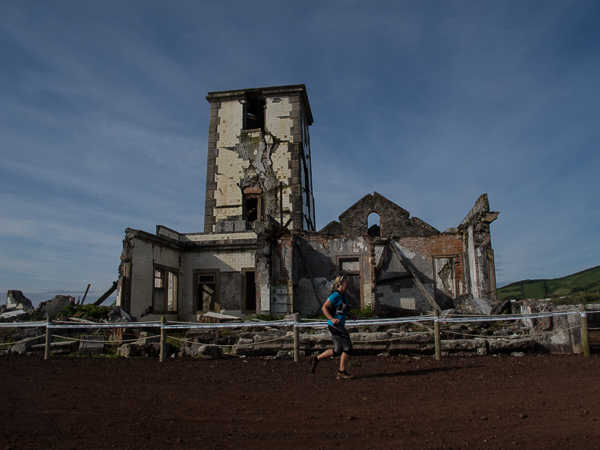 Über eine Wiese führen die Pfeile geradewegs auf den einstigen zwanzig Meter hohe Leuchtturm – das Skelett an der Ponta do Ribeirinha, welcher vom 1998er Erdbeben übrig geblieben ist. Große und noch viel mehr kleine Risse ziehen sich durch das verbliebene Mauerwerk. Schilder warnen vor Einsturzgefahr.