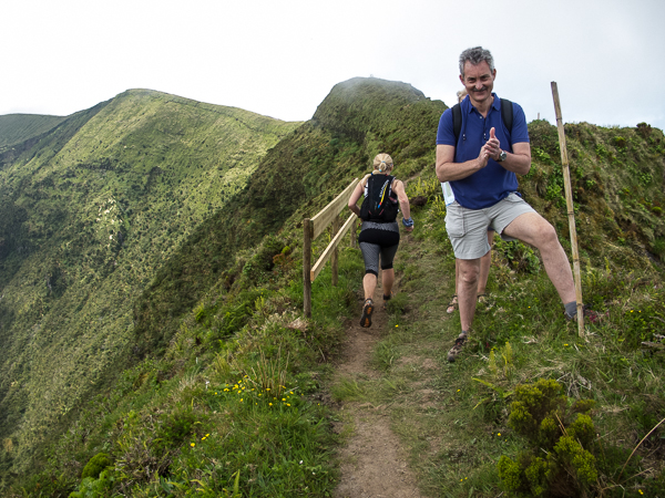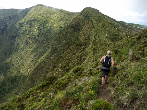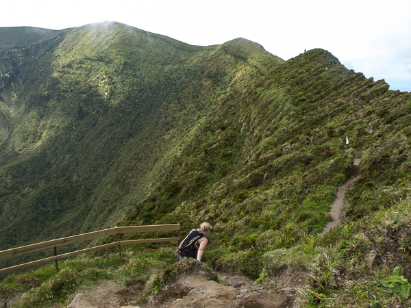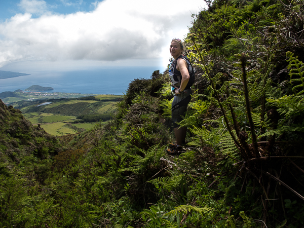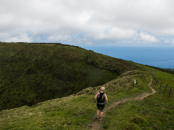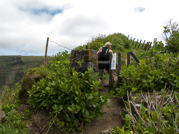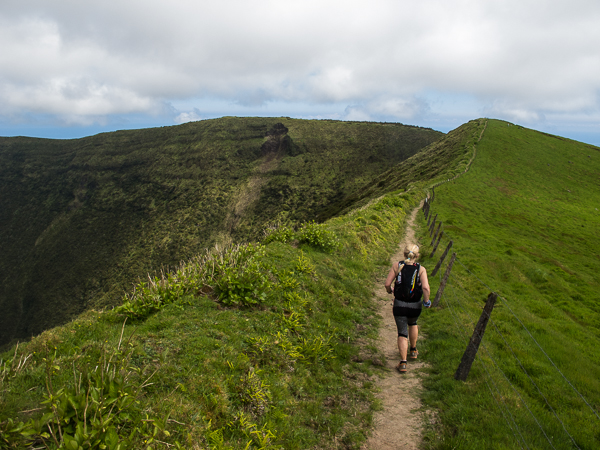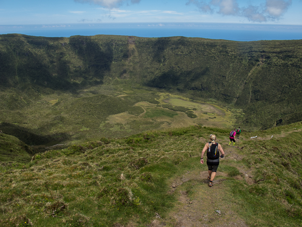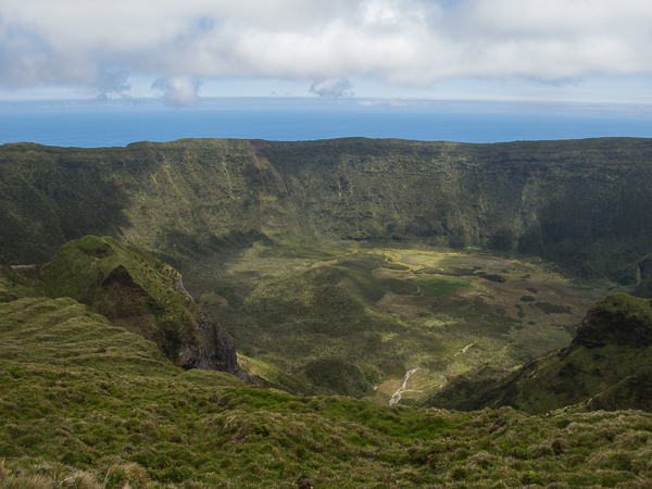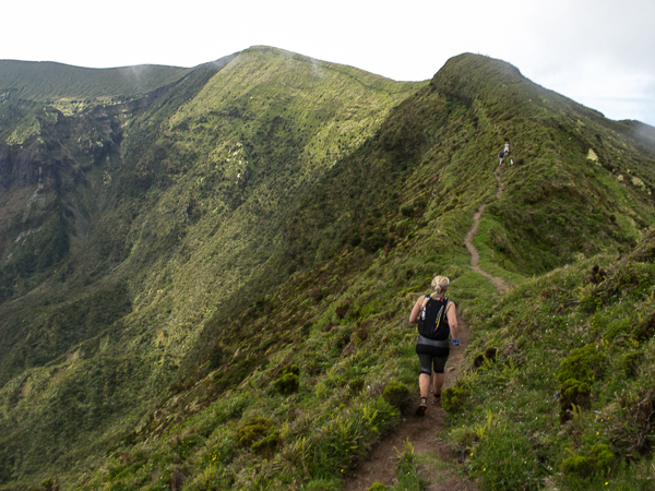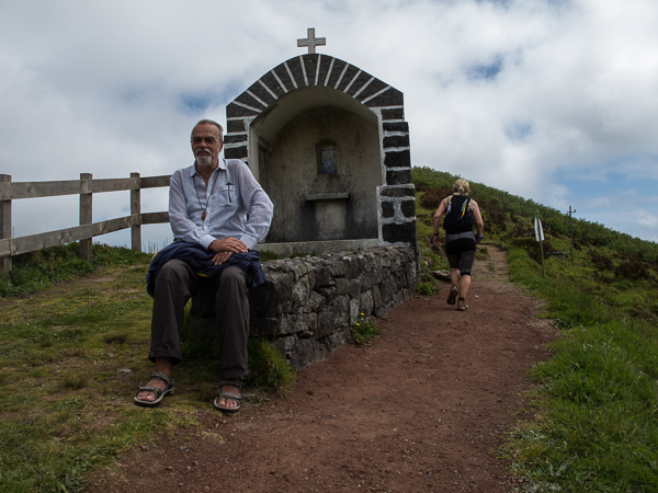 Gleichmäßig steigen die grünen Hänge zur großen Caldeira in der Inselmitte an. Mein Blick schweift über die grünen Steilhänge, den kleinen Anwesen der Farmer sowie den kleinen, aus Lavastein erbauten Steinmäuerchen am Wegesrand. Ich genieße diese Natur von unglaublicher Schönheit und Stille und bin gedanklich bereits Lichtjahre von Zuhause entfernt.