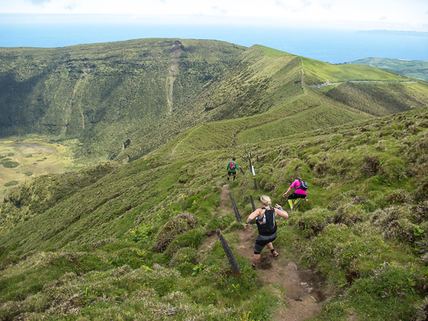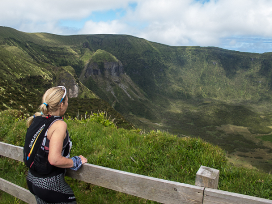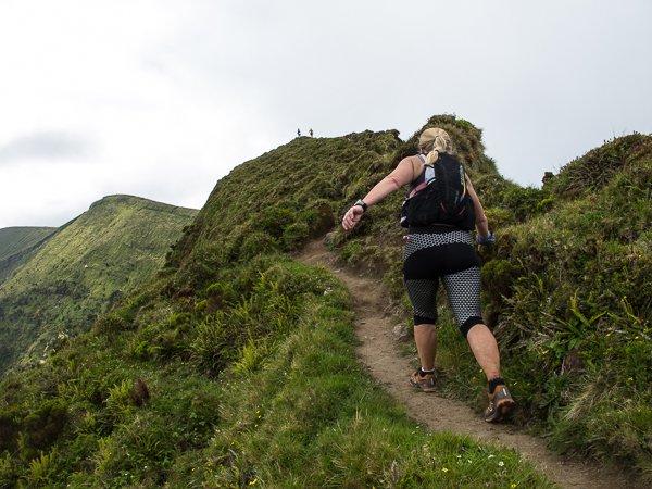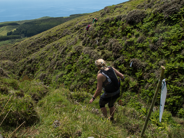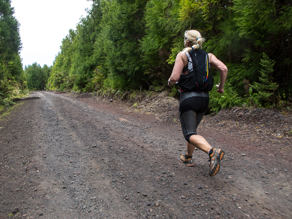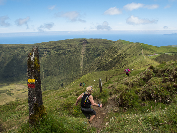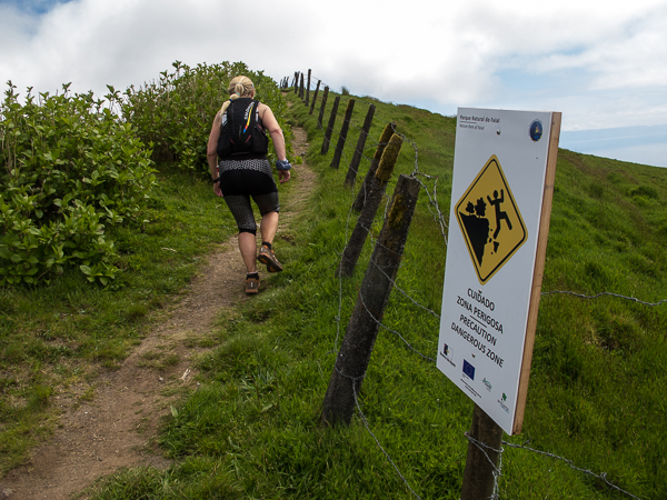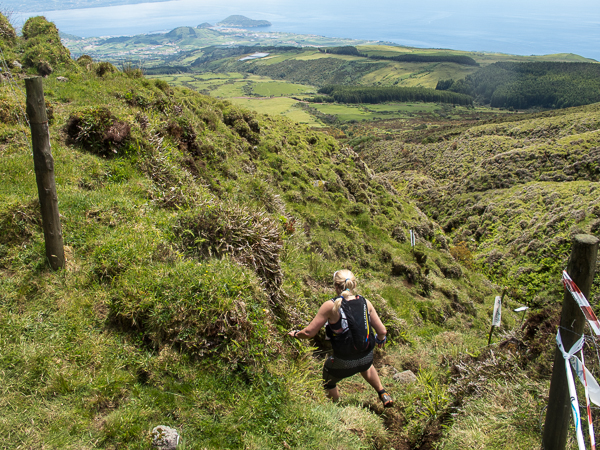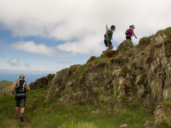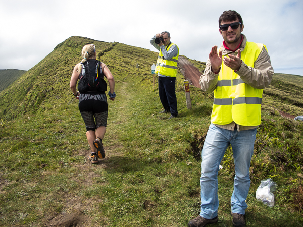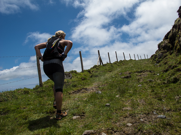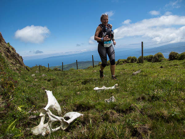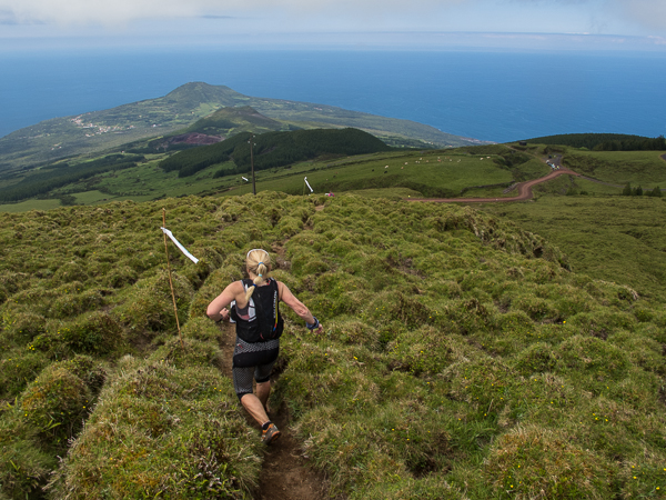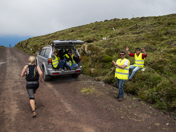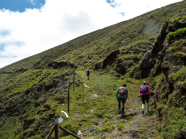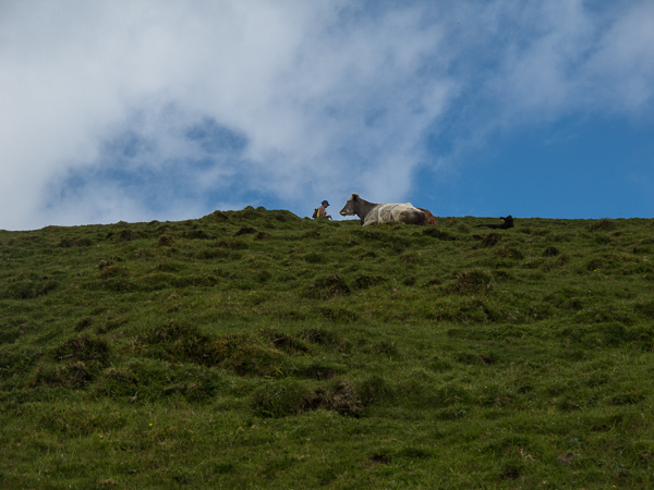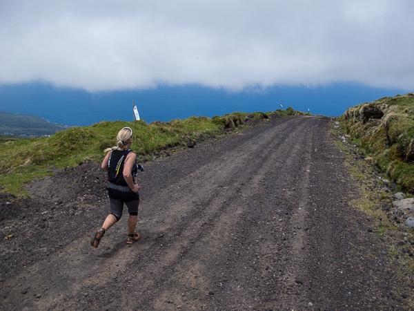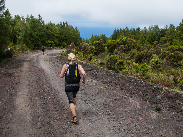 Nach zehn gelaufenen Kilometern schmecke ich die saftigen süßen Orangenspalten und die salzigen Nüsse an der Verpflegung. Höhe und Steigung dieses wahrhaft majestätischen Vulkans, der sanft aus dem blauen Fluten des Atlantiks bis in die Wolken aufsteigt, sind kaum zu erahnen – bis man den ersten Fuß setzt und mit dem Aufstieg beginnt. Auf den saftigen Wiesen grasen gutgenährte schwarzbunte Kühe, die keine Glocken und auch keine Ställe kennen. Aus ihrer Milch wird der salzige, hellgelbe Weichkäse gemacht, den wir morgens auf dem Frühstücksbuffet finden.