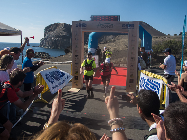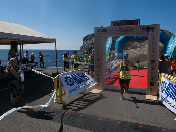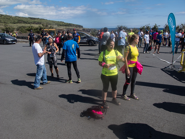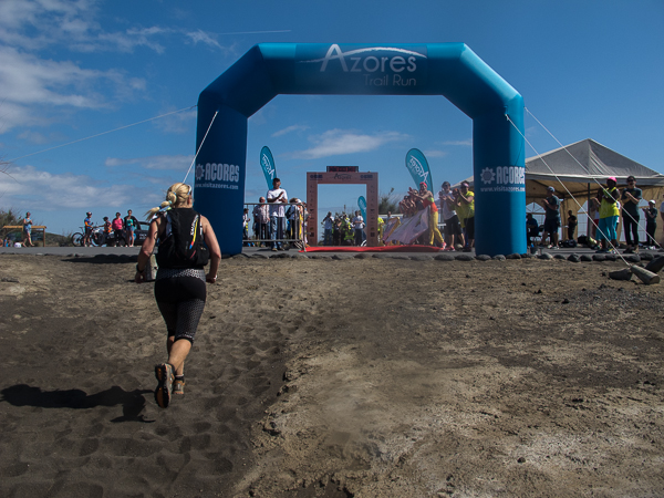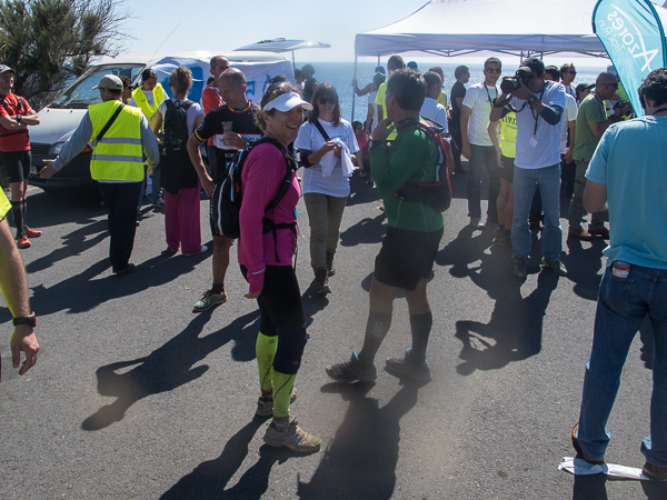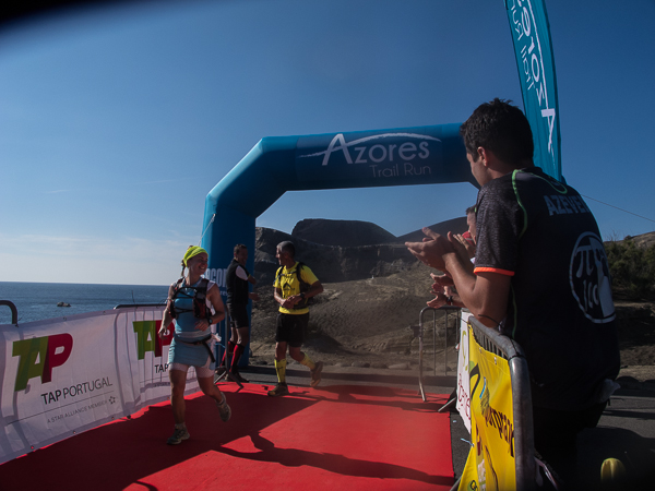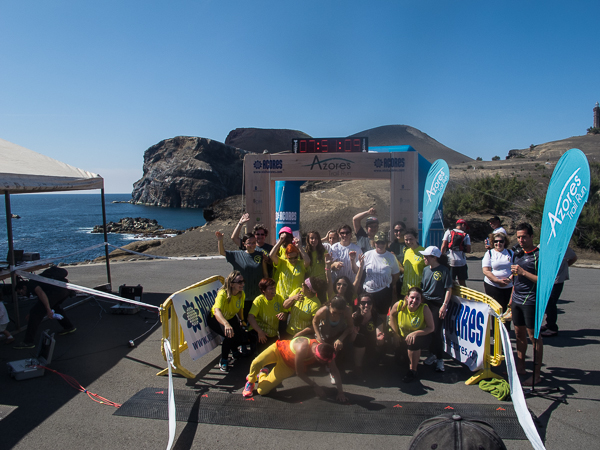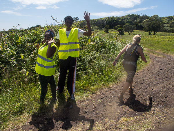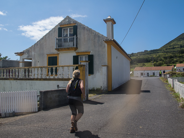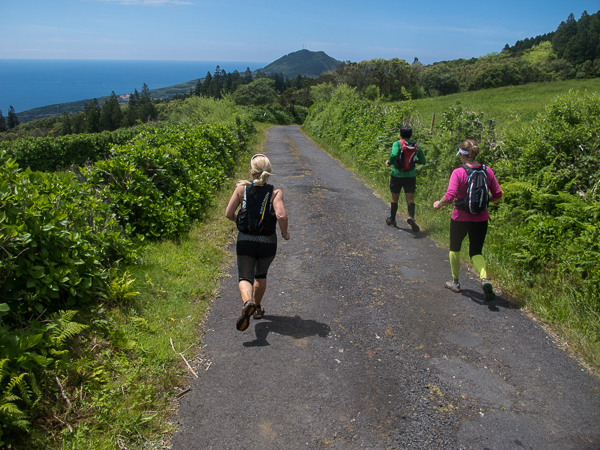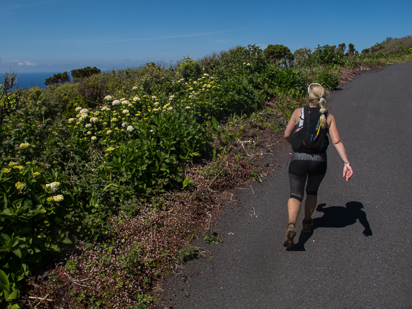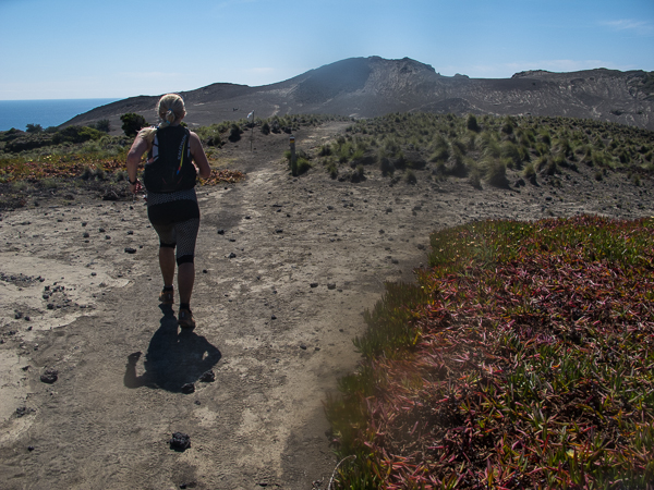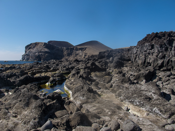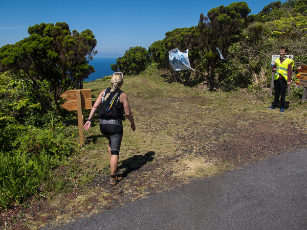 Sensationelles tut sich vor mir auf. Plötzlich ist neues Land in Sicht! Ich bleibe stehen, genieße den kilometerweiten Fernblick. Die Vulkankegel sehen von hier oben aus wie das Rückgrat eines grünen Dinos. Am Ende, sozusagen am Kopf des Drachens, ist der Ponta dos Capelinhos, die Halbinsel mit der bizarren Küstenlinie, zu sehen.