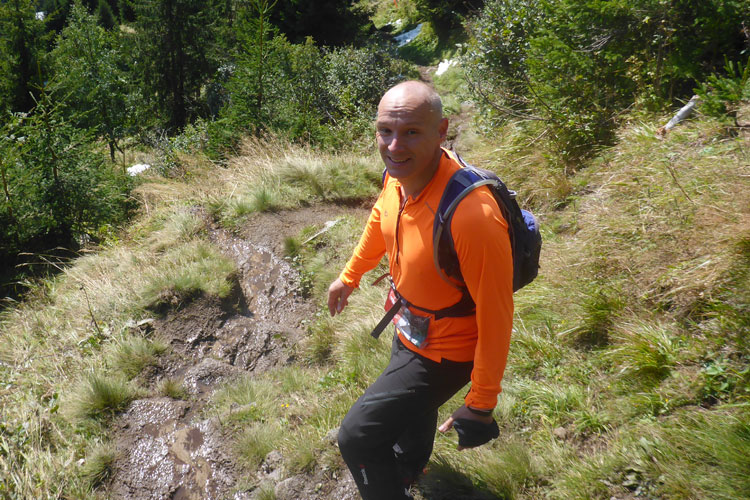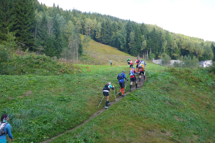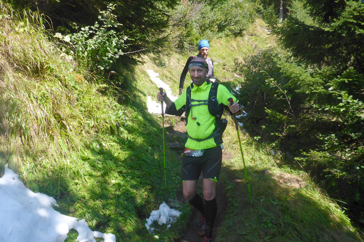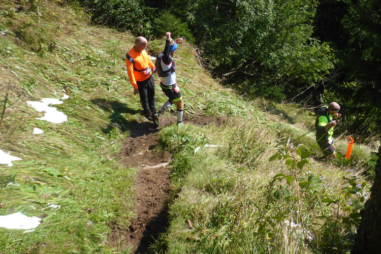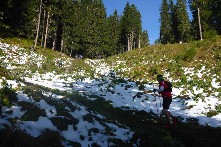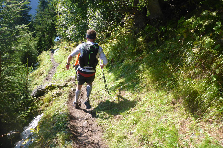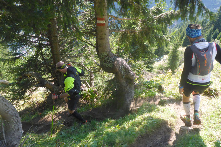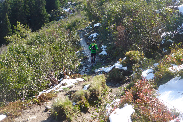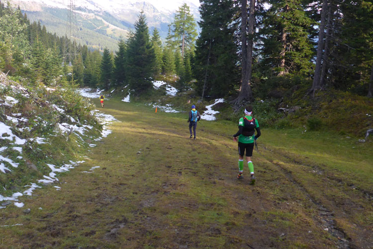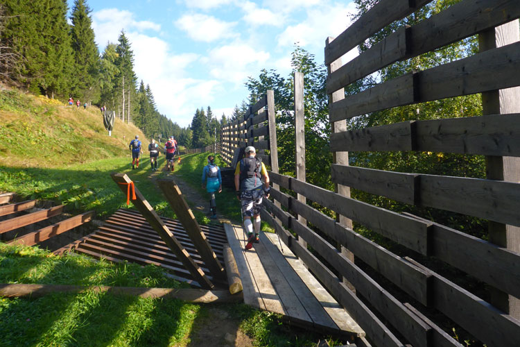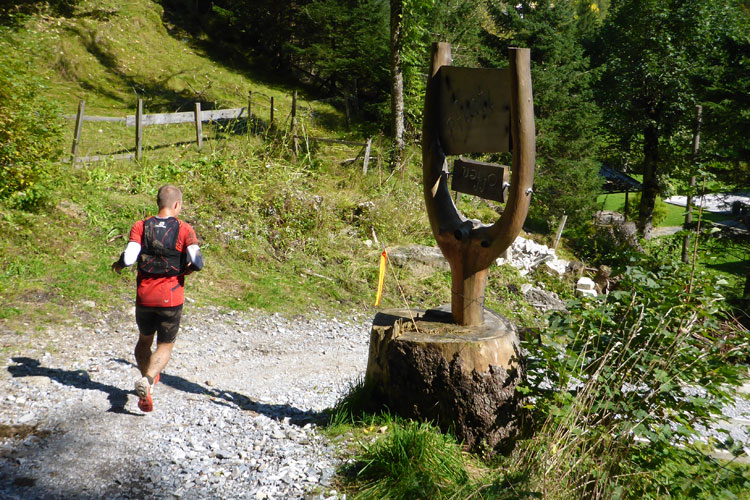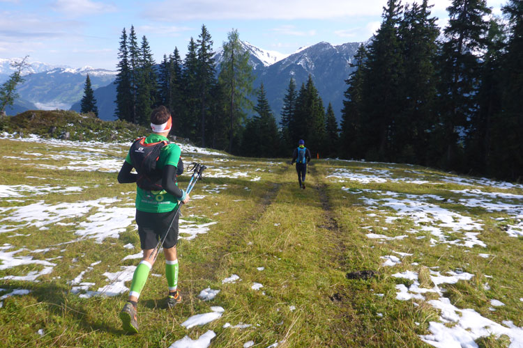 Etwa dreieinhalb Kilometer und 800 Höhenmeter insgesamt beträgt der erste Aufstieg. Diesen Abschnitt dürfen wir heute zweimal erkraxeln. Nachdem wir unsere große Runde in Bad Gastein (km 31) komplettiert haben, dürfen wir ab Talstation Stubnerbahn nochmals hier rauf und anschließend den zehn Kilometer langen Schlussabschnitt der großen Runde wiederholen. Das ergibt dann zusammen knapp 45 km. Natürlich hat man dann auch die Option, es bei 31 km zu belassen. Mehr Möglichkeiten für einen vernünftigen Long haben sich dem Rennleiter nicht ergeben. Aber, sage ich jetzt mal vielleicht etwas voreilig am Rennanfang, das Teilstück ist herrlich trailig, das kann man auch zweimal machen.