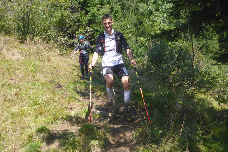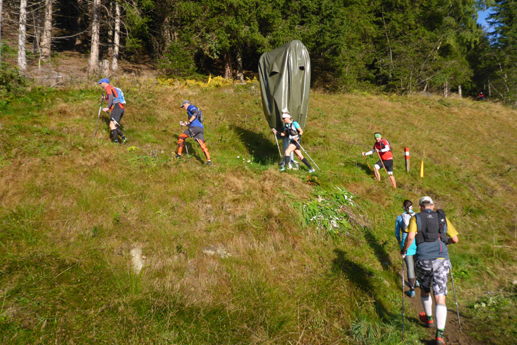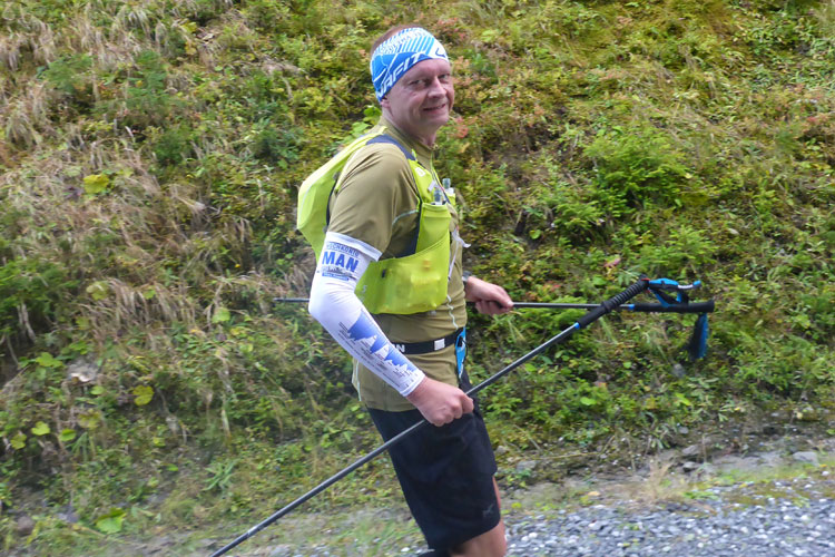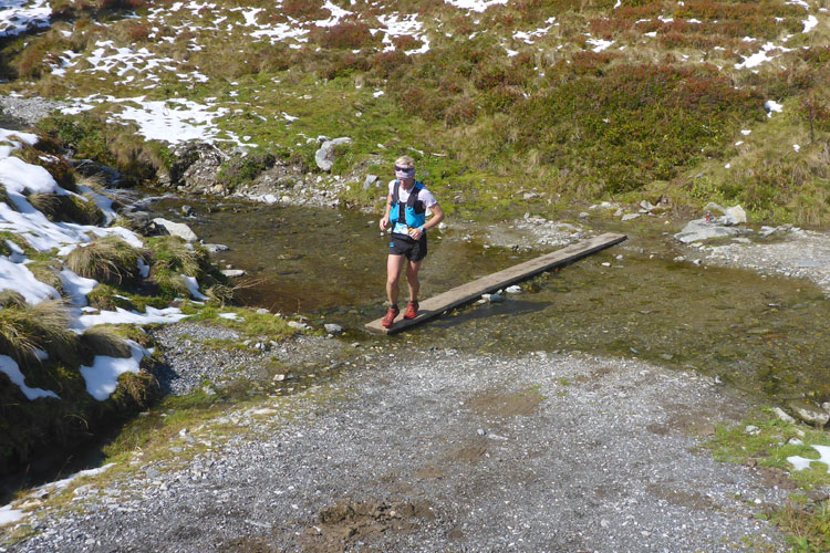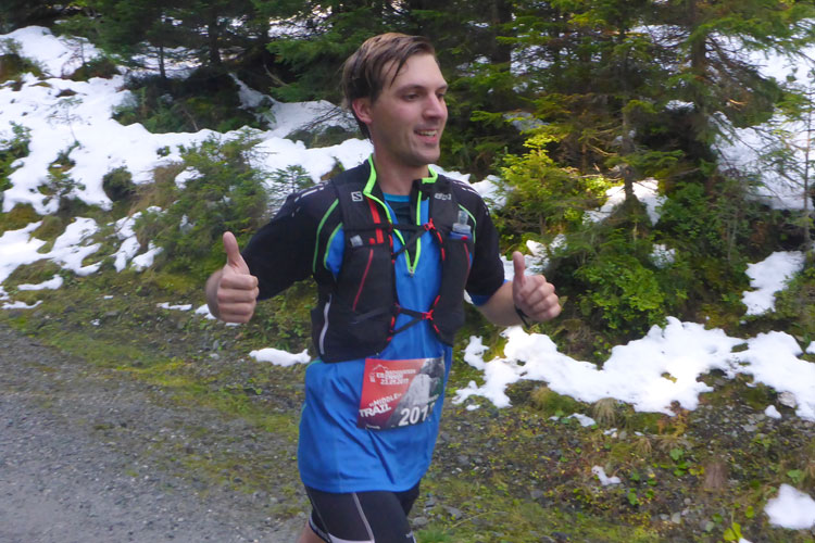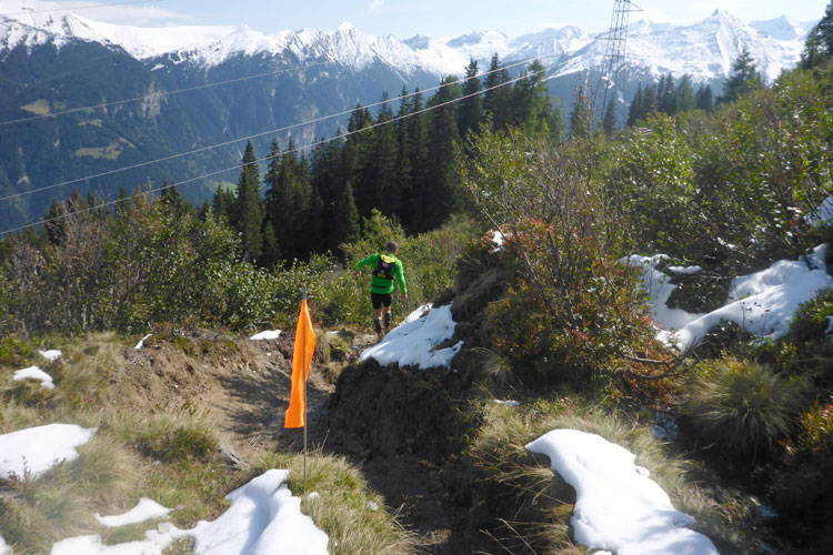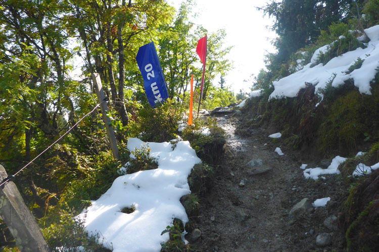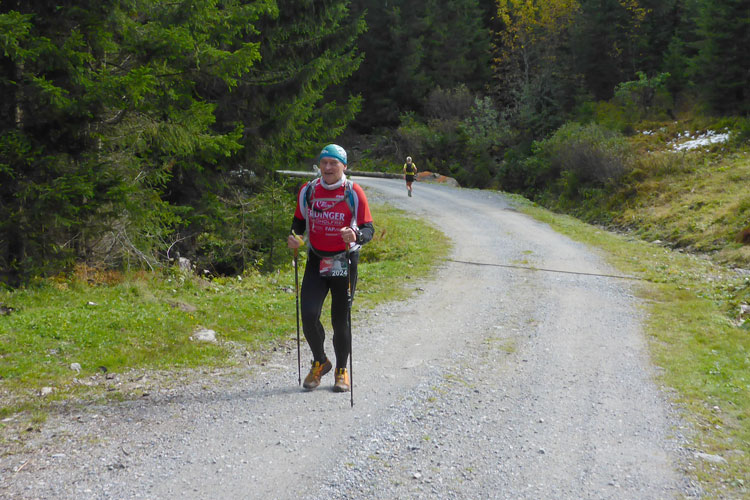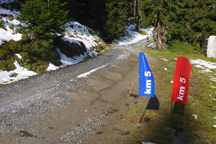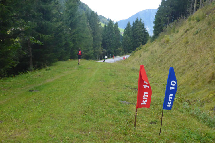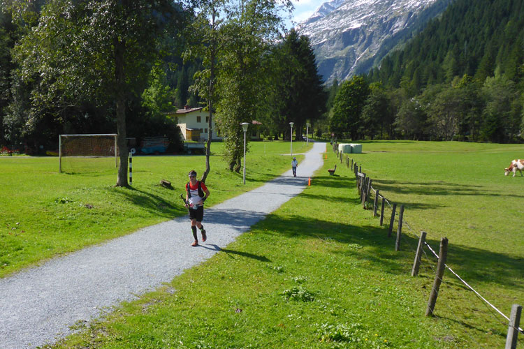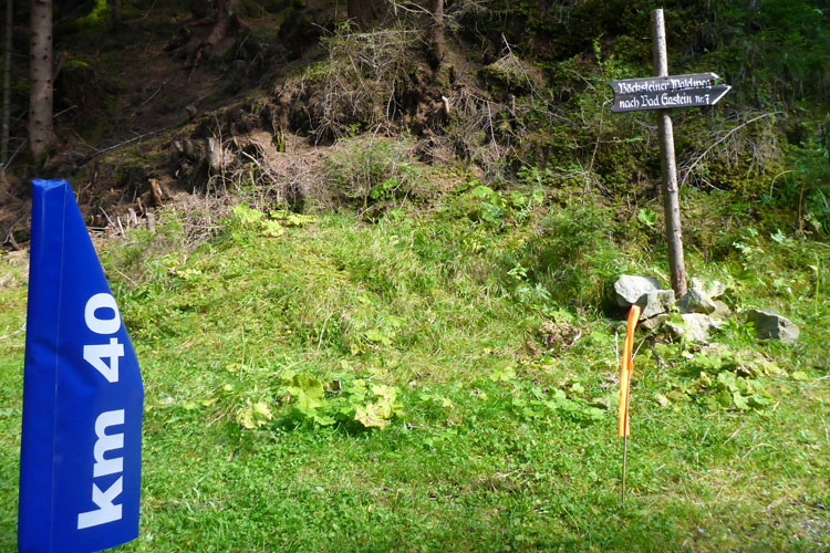 Mit Stöcken ist die Schlammschlacht wesentlich besser zu bewältigen, trotzdem schaffe ich es nicht, ohne abzusitzen runterzukommen. Allen Posten die ich passiere, vermeldet ich, dass ich der Schlussläufer bin und sie Feierabend machen. Plötzlich höre ich Stimmen hinter mir. Der Besenläufer sammelt bereits die Fähnchen ein. Wieder einmal. Ich bin ja kein Freund davon. Jetzt habe ich doch noch etwas Druck. Ich bin angespornt und es läuft es auch wieder ganz gut, so kann ich sie immer etwas auf Distanz halten. In Altböckstein kann ich sogar noch einen Zahn zulegen und im Nu ist nichts mehr vom Besenläufer zu sehen.
