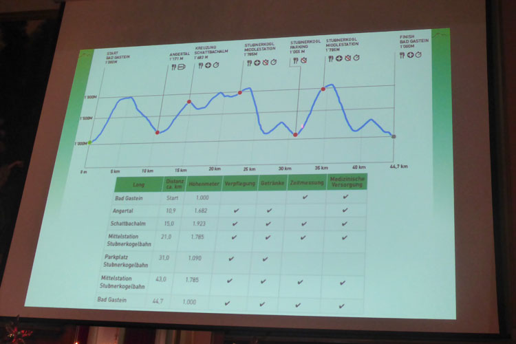 Am Dienstag bekomme ich eine Mail vom Veranstalter, dass auf den höheren Streckenteilen zu viel Schnee liegt. Da die Sicherheit im Vordergrund steht muss eine Kurskorrektur beim Long vorgenommen werden. Der höchste Punkt der Strecke zum exponiert liegenden Niedersachsenhaus kann nicht gefahrlos passiert werden und so wird diese Passage gestrichen. Ein Blick auf die Webcams in Bad Gastein lässt mich erschaudern. Oberhalb 1800 Meter herrscht geschlossene Schneedecke, es sieht aus wie im tiefsten Winter. Aber eine Schlechtwetterstrecke steht parat, dadurch ändern sich die Streckenwerte nur minimal. Ist schade, aber mit der angebotenen Alternative kann man auch gut leben.