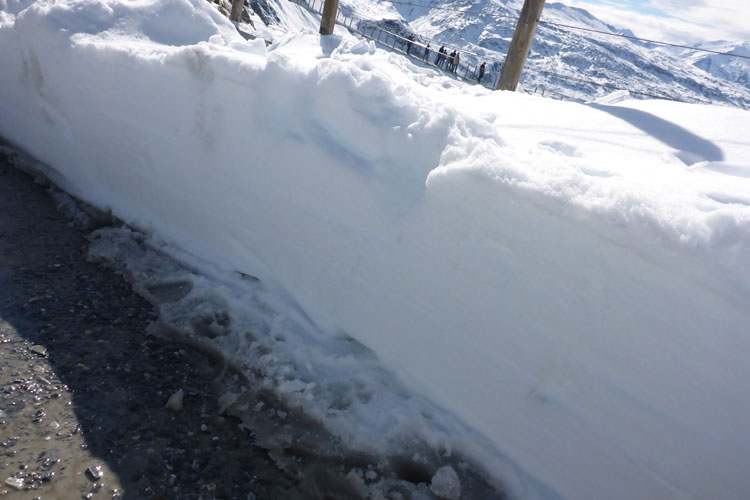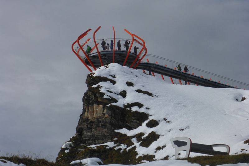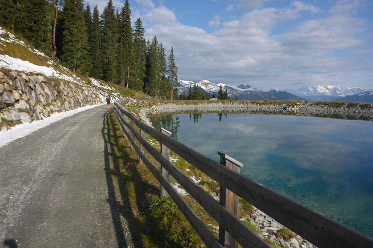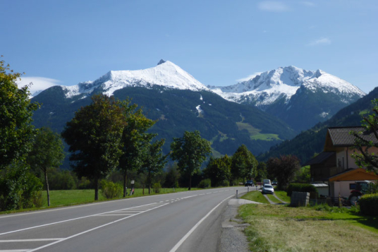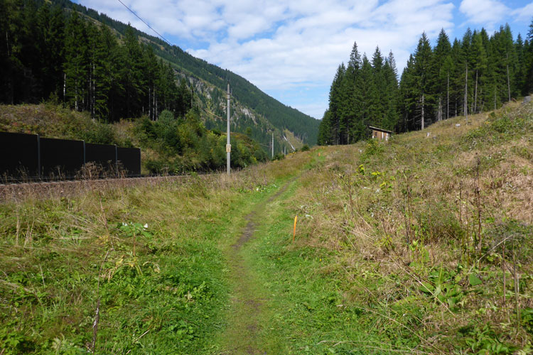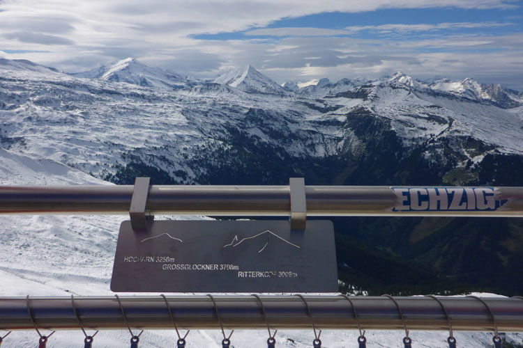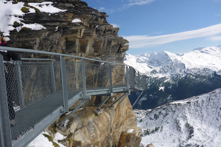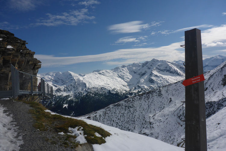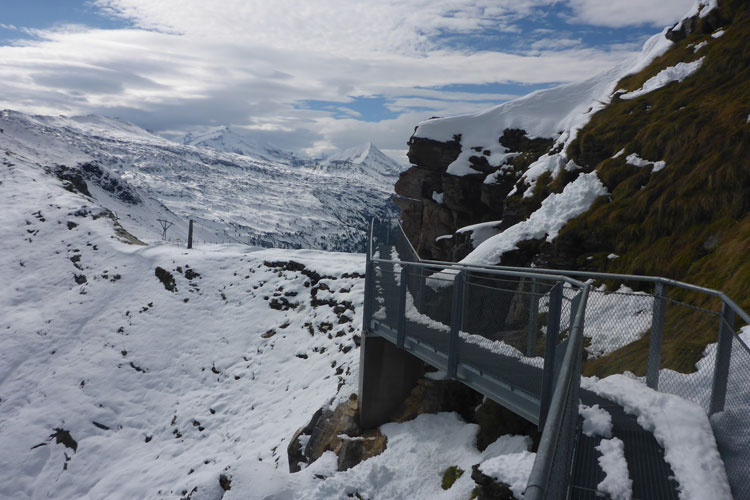 Etwa 500 Meter davon entfernt liegt der Felsentrail und zwischendrin, oberhalb der Originalstrecke (wenn sie denn auch mal gelaufen wird), die Aussichtsplattform „Glocknerblick“, von der aus man einen Ausblick auf den höchsten Berg Österreichs, den Großglockner (3798 m) genießen kann. Da meine ich aber, müsste man einen kleinen eigenmächtigen Abstecher machen, sie liegt sicher nicht auf dem Streckenplan.