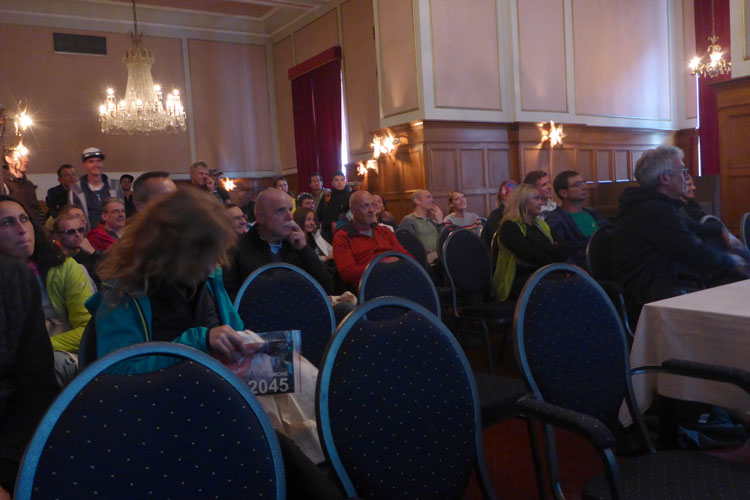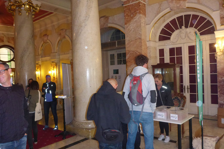 Bis kurz vor den Starts besteht im Foyer des Hotel de l‘ Europe die Möglichkeit die Startnummern zu empfangen. Im Wiener Saal im Untergeschoß kann man sich warm halten und Wärmebekleidung deponieren, bei frischen 4 Grad sicherlich angebracht. Pflichtausrüstung gibt es im Übrigen bei den Ultraks-Veranstaltungen nicht zu beachten, man setzt auf Eigenverantwortung.
