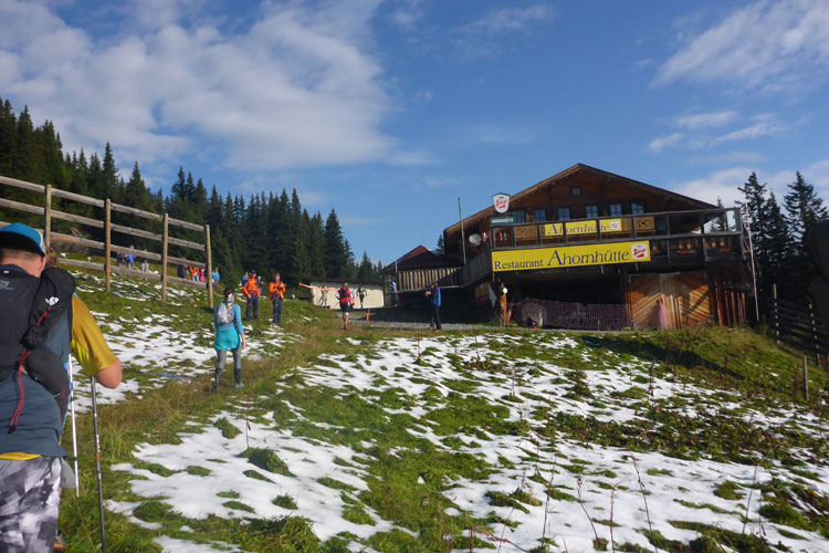 In gleichmäßigem Tempo mit den Stöcken und ohne Fotoablenkung läuft es gleich wieder viel besser. Ganz alleine, ohne noch irgendeinen weiteren Mitstreiter zu Gesicht zu bekommen, ziehe ich nach oben. Ein weiteres Zeitlimit ist an der Mittelstation der Stubnerbahn einzuhalten. 7:45 h ist hier die Vorgabe. Ich bin immer noch 45 Minuten darunter. An der Station verkündet man mir, dass ich der Letzte im Rennen bin. Was soll’s, ich genehmige mir Red Bull, Cola, eine Suppe und noch ein Energy Gel und mache mich wieder vom Acker.