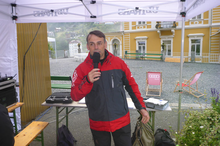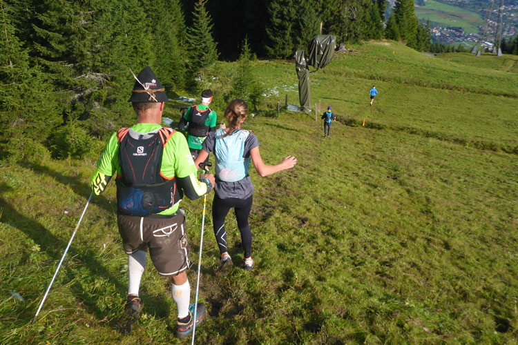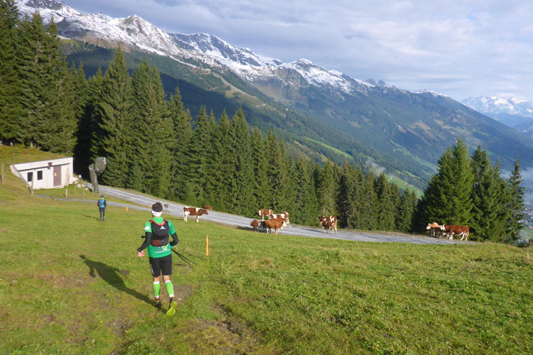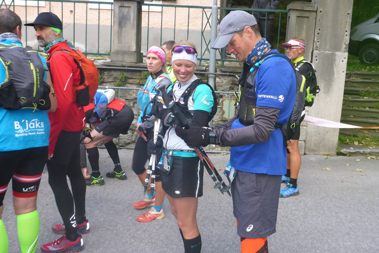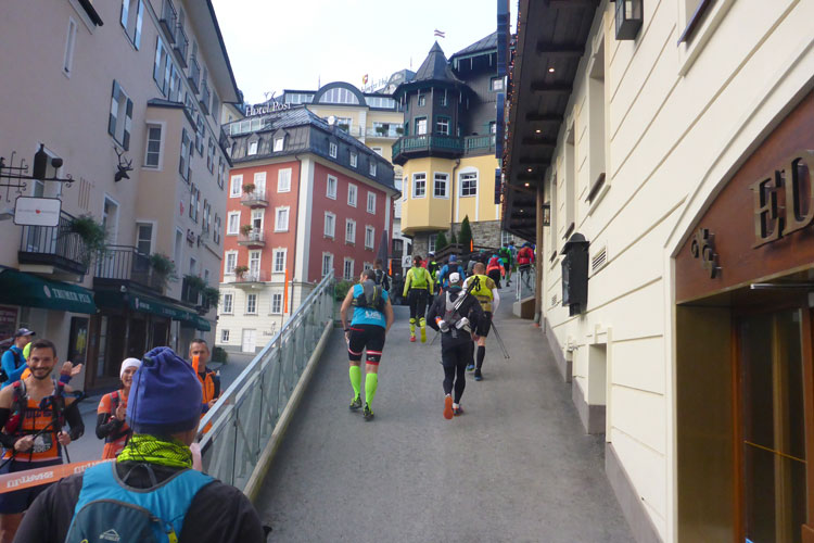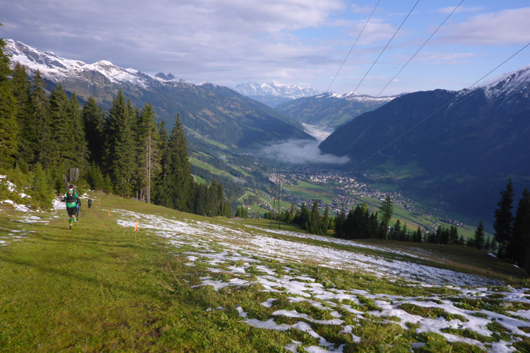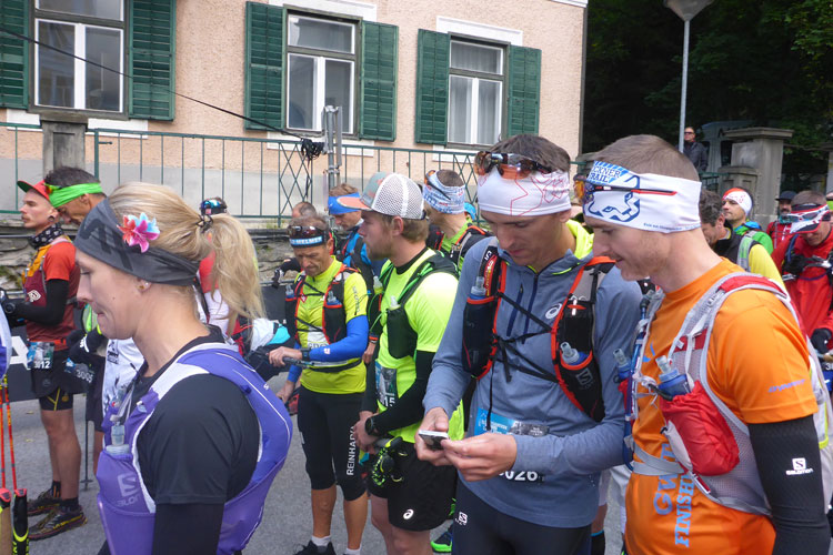 8:15 Uhr, blauer Himmel und super Aussichten. Etwa 70 Trailer stehen auf der Kaiser-Franz-Josef-Straße bereit, um nach den Wetterkapriolen im Vorfeld die Langstrecke anzugehen. Ursprünglich sollten Long und Middle gleichzeitig gestartet werden, da aber die neue Strecke mit einem sofortigen, steilen Anstieg auf den Stubnerkogel startet, wurde das Starterfeld wegen Staugefahr etwas entzerrt. Middle startet jetzt 20 Minuten später. Die „Shorties“ dürfen ausschlafen, sie starten erst um 9:30 Uhr. Von 10 wird runtergezählt, dann geht’s los.