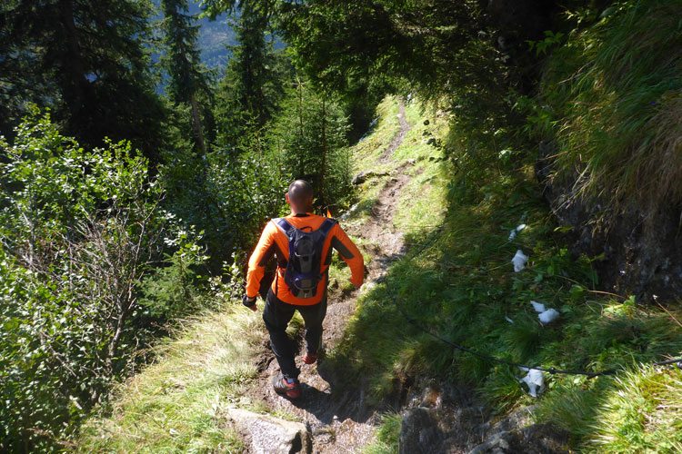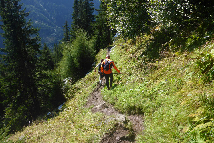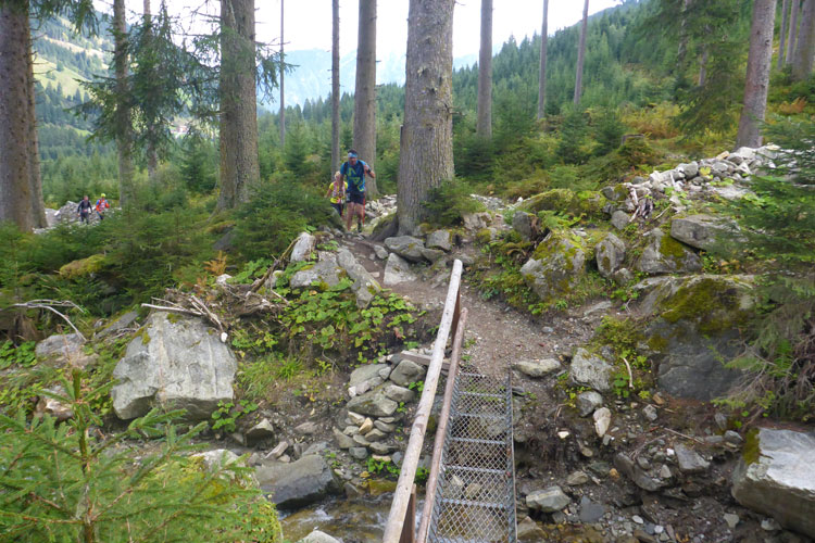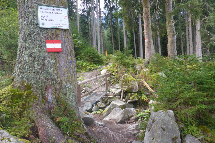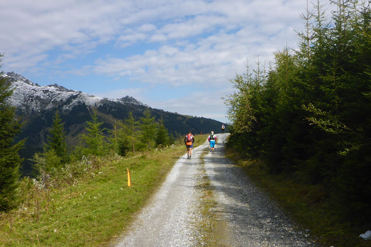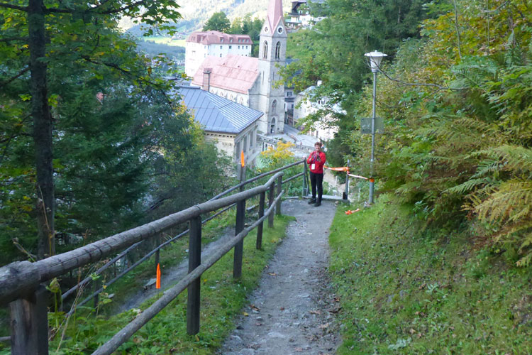 In Altböckstein ist Vorsicht geboten, wir müssen die Bundesstraße überqueren, es stehen aber einige Helfer bereit und blockieren den Verkehr. Der Böcksteiner Waldweg führt uns direkt nach Bad Gastein. Nicht mehr besonders aufregend, aber nach dem schweren Abstieg eine willkommene Abwechslung. Ich bin jetzt doch ziemlich geschafft, aber nochmal gibt es einen Anstieg mit fast 200 hm zu bewältigen. Dafür dasselbe auch wieder angenehm bergab.