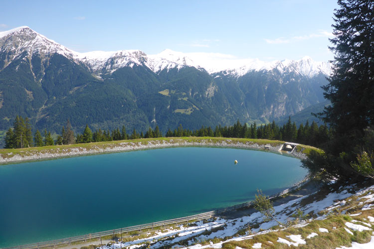 Verzichten müssen wir somit leider auf viele alpine Highlights. Nicht passierbar ist das Niedersachsenhaus in der Riffelscharte, der höchste Punkt der Strecke etwas darüber (2500 m). Die Bockhartseen entfallen ebenso wie auch die Gipfelstation am Stubnerkogel mit seiner aufregenden Hängebrücke und dem Felsentrail. Darüber bin ich erstmal natürlich schon etwas enttäuscht, aber schaun mer mal, was noch übriggeblieben ist.
