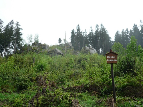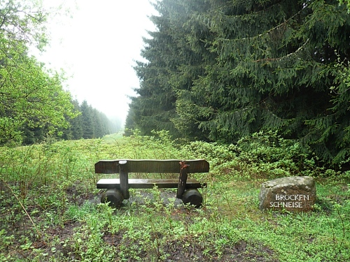 Bei den Dachsklippen haben wir eine kurze Erholung und dann geht`s wieder aufwärts zum Huthberg. Es sind über 120 Klippen im Harz namentlich erwähnt, eine Dachsklippe ist nicht darunter. Dafür aber die Hexenküche, der Feigenbaum, der Treppenstein und die Kästeklippen auf dem Huthberg. Egal, zu sehen gibt es an den wenigen Lichtungen vor lauter Dunst und Regen sowieso nichts. Bei km 14 geht es über den 643m hohen Breitenberg. Wie hingeschmissen liegen große Granitfelsen in der Gegend rum. In kleinen Bächen sucht sich das Regenwasser einen Weg und wir erreichen des höchsten Punkt der Strecke. Ich denke zunächst einmal lieber nicht daran, dass ich das Ganze ja wiederholen muss.