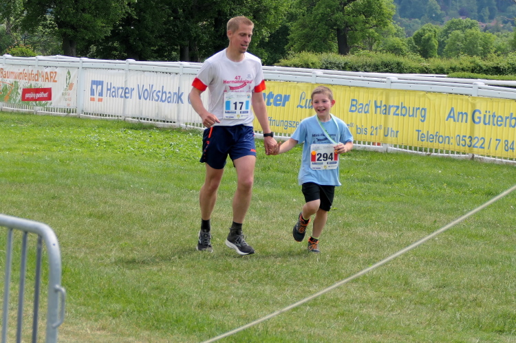 Begrüßt werden die Teilnehmer von Krodo, dem Maskottchen von Bad Harzburg. Laut Sassenchronik ist es eine Gottheit der germanischen Sachsen, die heute der Läuferschar Schutz bieten soll. Ob er Schutz vor der kommenden Hitze bieten kann, weiß ich nicht. Um dieser aber etwas ausweichen zu können, schließe ich mich dem kleinen Feld der Frühstarter an, die der Veranstalter dankenswerterweise bereits um 9.30 Uhr auf die Strecke entlässt. Auch wenn ich nur leichte Zweifel an meiner Form habe möchte ich doch rechtzeitig auf die zweite und letzte Runde gelassen werden, denn dazu muss ich um 13.00 Uhr die entsprechende Verpflegungsstelle passiert haben, sonst werde ich direkt ins Ziel geschickt.