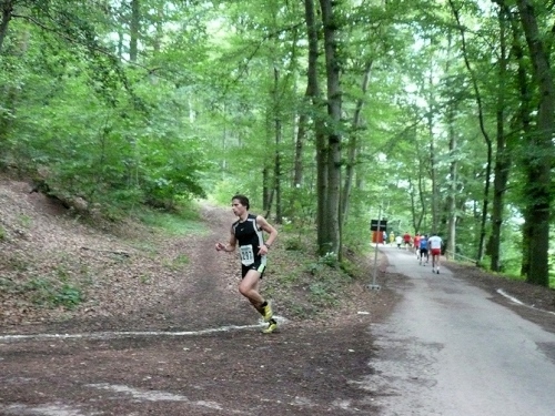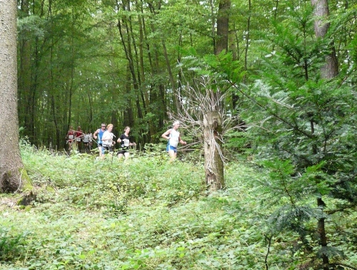 Es folgt ein weiterer Anstieg zum Bomberg, 690m hoch, aber nur der zweithöchste Punkt der Strecke. Kurz danach bei km 25 verlassen die Halben die gemeinsame Strecke und wir nehmen die große Nordschleife unter die Füße.