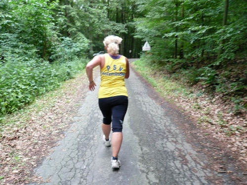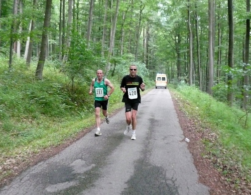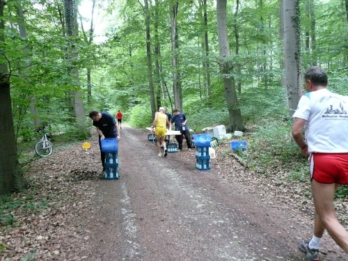 Jetzt kommt die große Nordschleife von 3 km Länge und schon kommt mir der spätere Sieger Tim Wortmann entgegen, er ist schon bei km 9,2. Später laufen wir diese Schleife noch einmal (km 20 – 23, zweimal geht es bergauf. Nach einem kurzen Parallelstück kreuzen wir den Schlangenweg. Es geht über den Fürstenweg in die Westschleife bis zu Km 16.