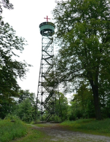 Nach der nächsten Verpflegungsstelle laufen wir über die Terhardshöhe und den Philosophenweg zurück zur Bombergstrasse. Immer wieder gibt es herrliche Ausblicke auf Bad Pyrmont und das dahinter liegende Emmertal. Kurz vor der nächsten Steigung kommen jetzt die Halbmarathonläufer auf unsere Strecke, die bis hier 3 km gelaufen sind - wir haben inzwischen km 19 erreicht. Es folgt die nächste VP-Station, die wir schon bei km 5 besucht haben. Zum 2. Mal geht es in die Nordschleife. Die Halben verlassen kurz unsere Strecke und wir kommen zu dem schon bekannten längeren Anstieg, bevor die Strecke wieder abwärts zum VP-Punkt und dann Richtung Norden führt. Es folgt wieder ein längerer Anstieg, dann eine kurze Erholung bis zum Spelunkenturm zwischen km 24 und 25. Der Spelunkenturm ist ein 25m hoher Aussichtsturm in Stahlfachwerkkonstruktion, der hier schon 1896 errichtet wurde.