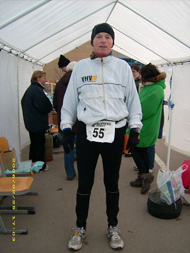 Parkplatzprobleme gibt es hier nicht und zum Startgelände an der Grundschule West ist es nicht weit Die Cafeteria und draußen der Bratwurstgrill waren schon gut frequentiert. Wir gingen in die Sporthalle, bekamen dort problemlos unsere Starnummern und hielten Ausschau nach Bekannten, die wieder zahlreich erschienen waren. So freuten wir uns besonders, Jürgen aus Nürnberg mal wieder zu sehen. Er lief seinen 232. Marathon. Eine stolze Zahl - vor allem wenn man weiß, dass Jürgen jeden Marathon nur einmal läuft. Nur ein einziges Mal hat er eine Ausnahme gemacht. Also hat er bei 231verschiedenen Marthonläufen gefinisht. Das ist bestimmt rekordverdächtig.