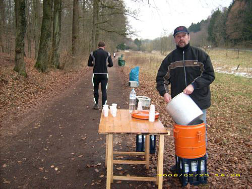 Nach einem Kilometer auf der 3. Runde gab es von Helfern den ersten Strich auf die Startnummer, und zwar in blau. Obwohl der kalte Ostwind und dieses ewige auf und ab zehrten, holte ich mir in der 4. Runde den grünen Strich ab. Inzwischen meldete sich schmerzhaft mein rechter Oberschenkel und ich hoffte, dass es nicht schlimmer würde.