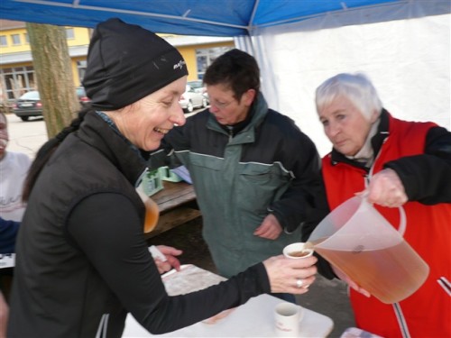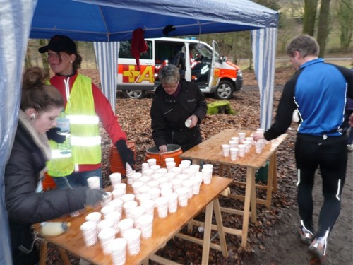 Die Duschen sind auch für uns Lahmsoggen noch warm, eine Wohltat. Mein Duschkamerad fragt sich laut, wie er sich wohl nach 230 km fühlen wird und sorgt so noch für Gesprächsstoff über die kommende TorTour de Ruhr. Am Ende dieses kleinen, aber feinen Marathonlaufs läßt sich für mich resümieren: Gut organisiert mit abwechslungsreicher Strecke, die aber wegen des in der Regel matschigen Untergrunds, der ordentlichen Höhenmeter und teilweise recht schmalen Wegen nichts für Rekordjagden ist. Muß ja auch nicht sein.