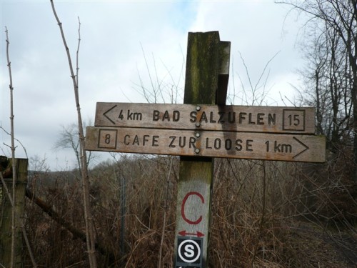 Teilweise ist es doch ganz schön rutschig. Gut, wer sich hier auf die Fresse legt, kann sich in einer der örtlichen Reha-Kliniken direkt wieder aufpäppeln lassen. Gut, daß ich meine Trailschlappen anhabe und insofern Aussicht auf eine verzugslose Heimfahrt besteht. Die heutige Aktion ist neben dem anspruchsvollen Marathon mit je 264 km An- und Abfahrt sowieso nicht ohne, da sollte ich am Ende noch gut beieinander sein. Auf jeden Fall nutze ich diesen trüben Februartag sinnvoll, denn es gibt heute sowieso nichts Vernünftigeres zu tun als zu laufen. Oder vielleicht lecker futtern oder ins Kino gehen, vor dem warmen Ofen sitzen, in der Sauna schwitzen bzw. überhaupt powerchillen.