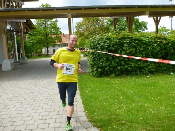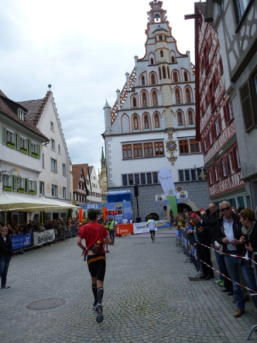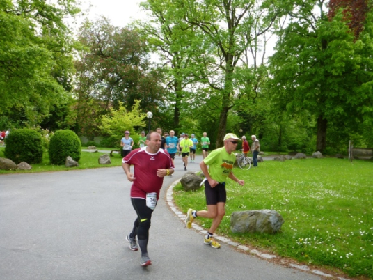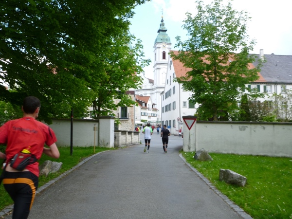 Ein wenig wellig sind die Spazierwege im Schlosspark, dann laufen wir am Schloss und der Stiftskirche vorbei und die erste Runde wird gleich enden. Die Halbmarathonis ziehen an, werden nach links gewiesen und beenden dann ihr Rennen. Gemeinsam mit Partic durchlaufe ist die Startlinie und beginne die zweite Runde. Patric ist mit der Zwischenzeit nicht so recht zufrieden, wir sind nur Sekunden unterhalb der Vier-Stunden-Schwelle.