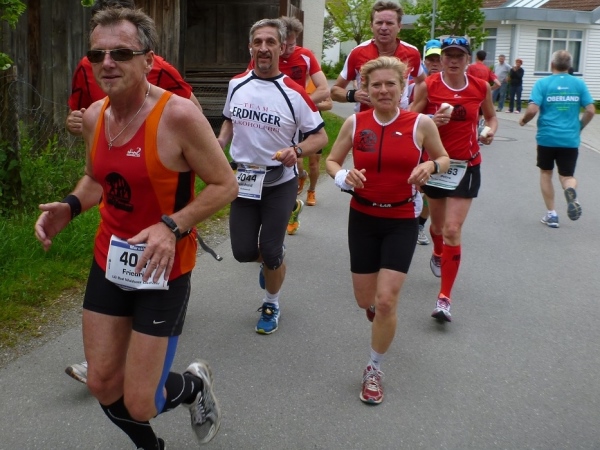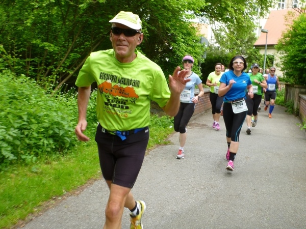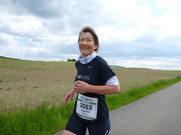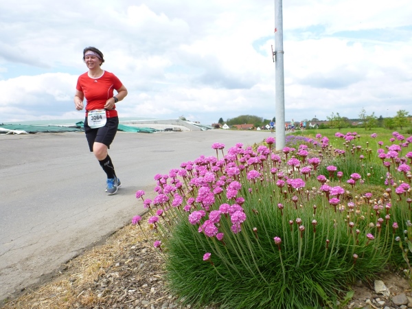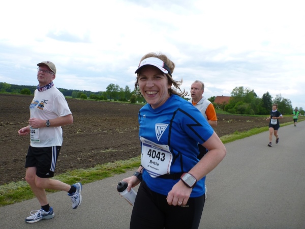 Bei Britta Kurz lese ich am Rücken „Montags ohne Sofa“, frage natürlich, wie es denn morgen, am Sonntag ausschaut und sehe dann in letzten Augenblick, dass sie eine 4000er Nummer, die der Maratonis, trägt. Auf mein „wird da die Couch geschunden“ lacht sie lauthals los. Wahrscheinlich zieht sie das Ding heute durch.