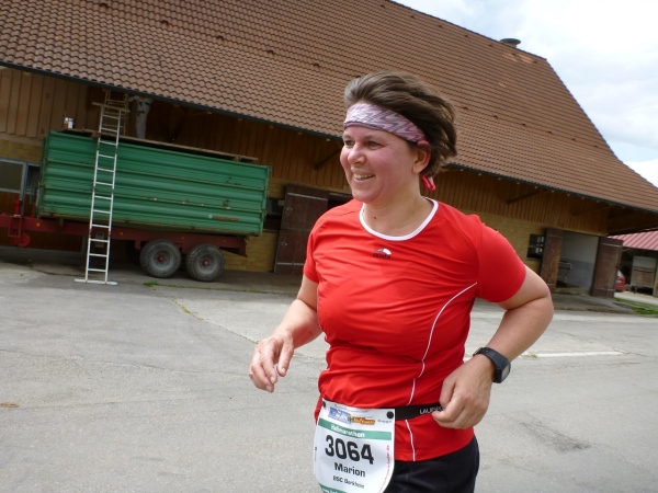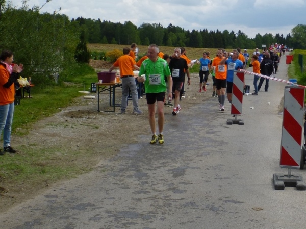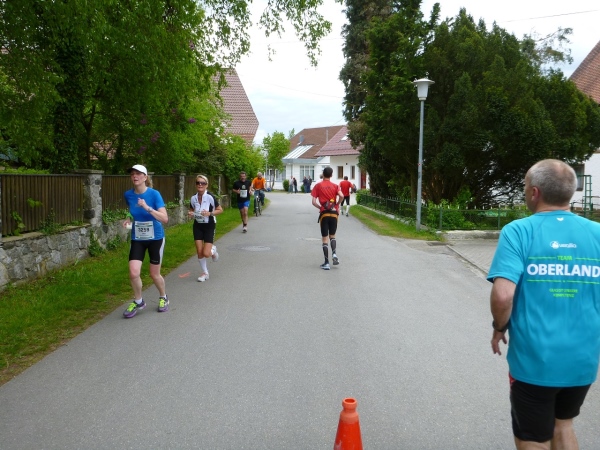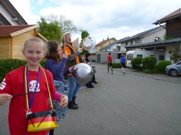 Auf der Strecke nach Steinach kommt uns schon frühzeitig der führende Marathonläufer entgegen. Geschätzte fünf Minuten dauert es, bis uns die weiteren Spitzenläufer entgegenkommen. In Steinach haben sich ein paar Kinder und die Mama mit Blechschüsseln, Trommel und Kochlöffel bewaffnet und hauen auf die Gegenstände ein, dass es nur so kracht.