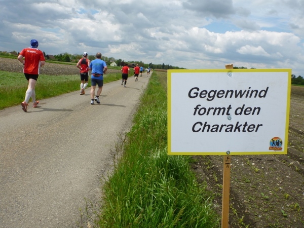 In Untermöllenbronn grüßt uns ein stattlicher Maibaum mit Zunftwappen und Kränzen. „Der schönste in Baden-Württemberg“ ruft mir einer hinterher. „Gegenwind formt den Charakter,“ ein weiteres Motivationsschild. Eigentlich nicht, denn Wind ist jetzt fast nicht zu spüren und wenn, dann kommt er leicht von hinten.