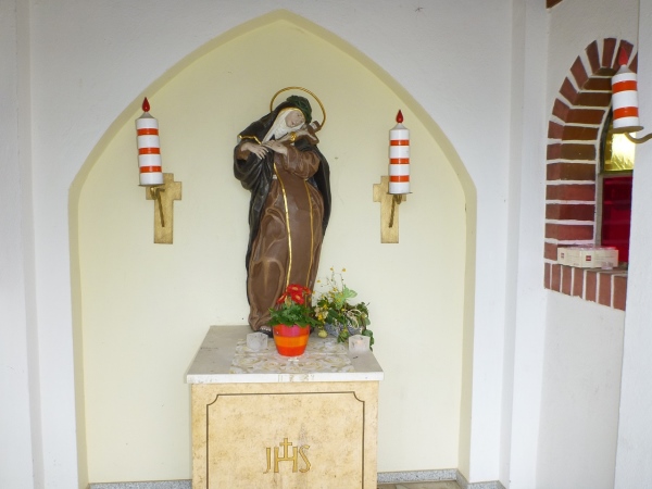 Am Klosterberg biegen wir links ab. Wer die Kirche besichtigen will, muss einige Treppen nach oben steigen. In dem riesigen Klostergelände sind heute rund 1600 Personen beschäftigt. Die im Jahr 1999 gegründete St. Elisabeth-Stiftung beinhaltet betreutes Wohnen, Werkstätten für Menschen mit Behinderung, Altenhilfe, Pflegeheim, Sozialstation, Bad und Wirtschaftsbetriebe wie Klostermetzgerei und Schreinerei. Am Ortsausgang sehen wir noch links die Gärtnerei. Eine Klosterschwester, auf dem Weg zur Arbeit, wünscht mir viel Glück.