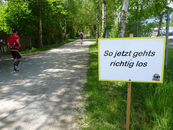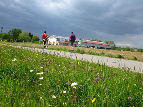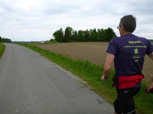 Von hinten kommt vor Reute Andreas Kley vom TSV Stiefenhofen angelaufen. Patric schickt mich vor und will ein wenig das Tempo herausnehmen. Andreas und ich ziehen das Tempo moderat an und können immer wieder vereinzelt überholen. „Ich halte mich an dich“, stellt er fest, als ich ihm die Geschichte von der Tankstelle mit dem Hopfenbenzin erzähle. Wie er, so habe ich vor fünf Jahren in Ulm bei der Laufnacht den 100-Kilometer-Lauf gepackt. Und dieses Jahr will er in Biel erfolgreich den langen Kanten bezwingen. Ich mache ihm Mut, denn einmal musst du nach Biel.