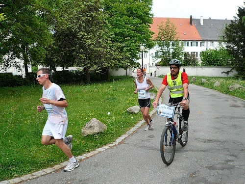 Durch den Schlosspark hindurch geht es ins Wohngebiet Steinach, wo immer wieder Gruppen von Anwohnern diese Veranstaltung als Anlass zum gemütlichen Beisammensein nehmen und teils unter Zuhilfenahme von Küchengeräten den Sportlern ihre lautstarke Unterstützung kundtun.