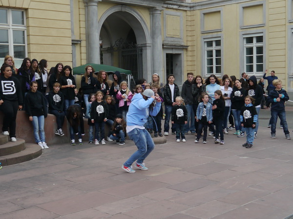 Wir laufen durch den herrlichen Schlossgarten, der seinerzeit wie die meisten Parks im Stile Englischer Landschaftsgärten angelegt wurde. Im östlichen Teil, dem Fasanengarten mit den chinesischen Teehäuschen, laufen wir eine sehr belebte Wendepunktstrecke und kommen danach noch einmal zum Schloss und von dort in die Fußgängerzone. Ehrlich gesagt, in den Vororten war mehr los als hier. Ok, die Stadt ist mit der Großbaustelle zurzeit wenig attraktiv. Ich kann mir vorstellen, dass sich die Leute am  Sonntag ein schöneres Plätzchen suchen. Auch die Tänzer hält es hier nicht länger. Sie packen ihre Sachen und tschüss …
