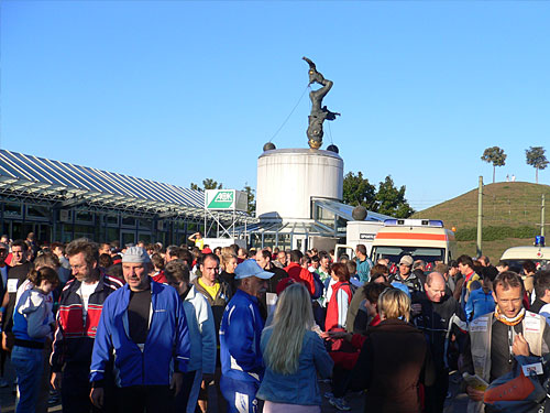 Bevor am Samstag um 12:30 Uhr die Europahalle öffnet, hat sich vor dem Eingang schon eine große Anzahl Läuferinnen und Läufer versammelt, um ihre Startunterlagen abzuholen, über die Messe zu bummeln und Kohlehydrate zu bunkern.