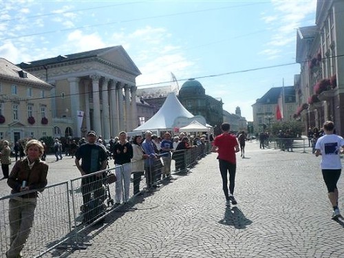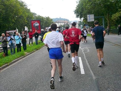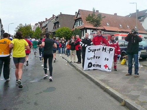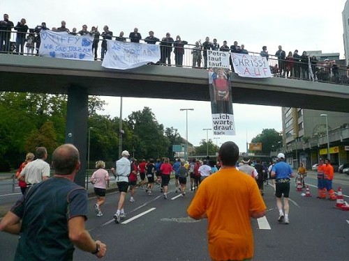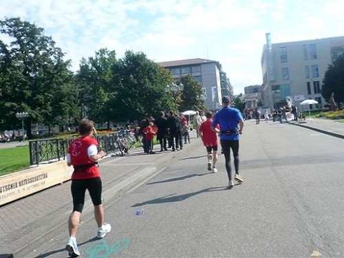 Karlsruhe hat vermutlich alles an vorhandenen Grünflächen für den Marathon bereitgestellt. Es gibt Begeisterung, viel warmherzige Anfeuerung und jede Menge Kreativität dabei, aber manchmal (vor allem in Bereichen, wo man es bei einem Stadtmarathon erwartet, wie z.B. in der Fußgängerzone) würde man sich auch wünschen, dass die Karlsruher etwas mehr hinter ihrem Marathon stehen, anstatt ihn zu ignorieren.
