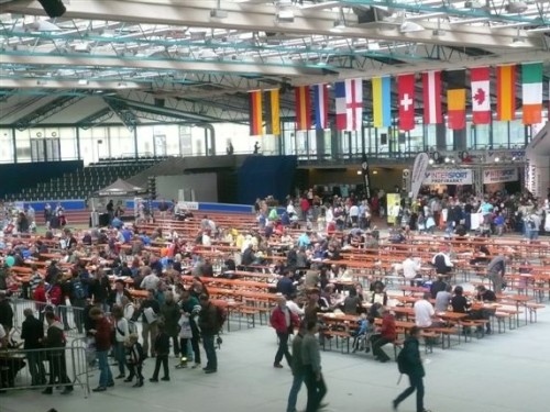 Nach einer netten, aber langen Autofahrt erreiche ich Karlsruhe und finde schnell das Hotel Rio. Von Insidern empfohlen, liegt es sehr günstig in der Nähe der Europahalle – dem Ort des Geschehens. Ein schneller Ritt mit der Straßenbahn bringt mich zum Veranstaltungsort.