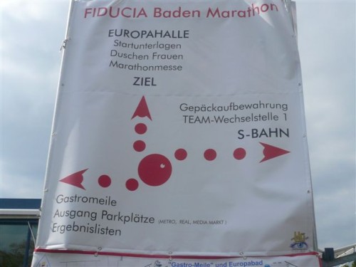 Der Baden-Marathon ist bestens organisiert, alles ist auf kurzen Wegen leicht zu finden. Die Verpflegung auf der Strecke ist vielseitig und wird von Anwohnern mit Kuchen, Brezeln und Schokolade getoppt. Sanitäter gibt es an jeder Ecke, ausgestattet mit Defibrilatoren sind sie auf alles vorbereitet.