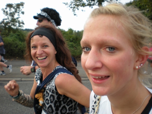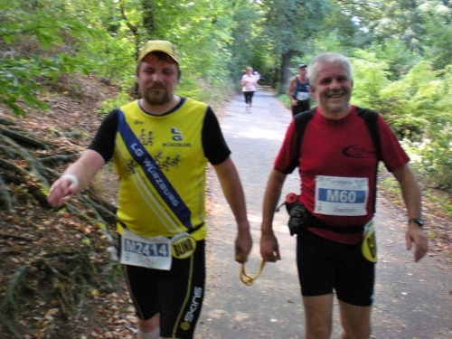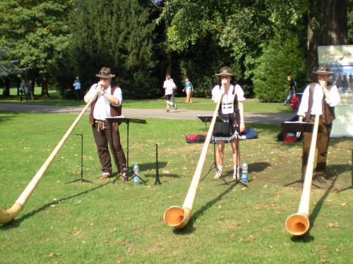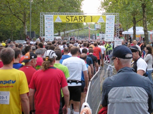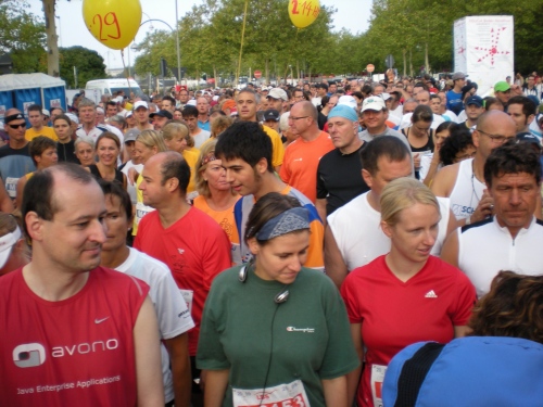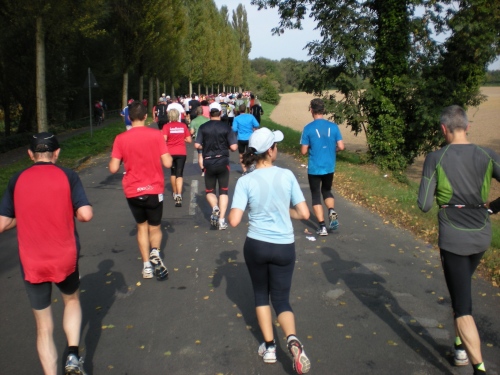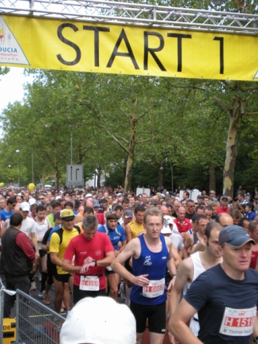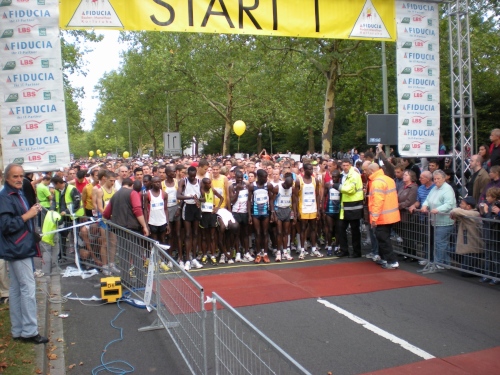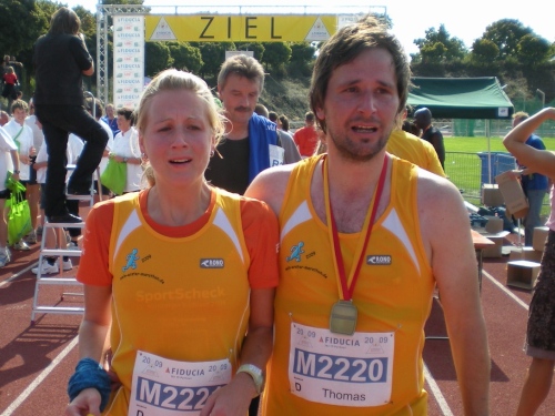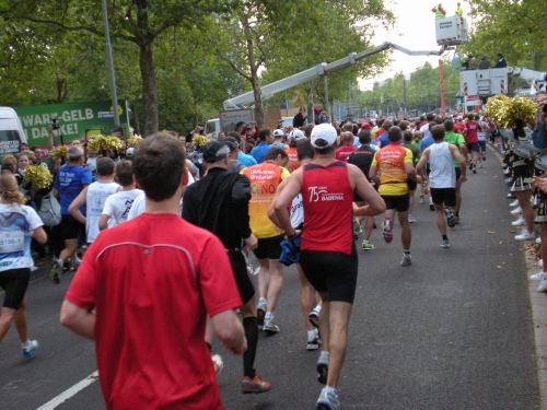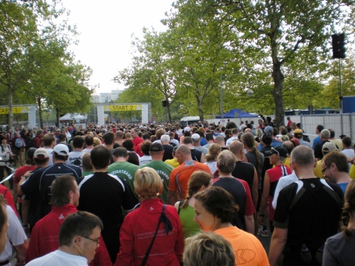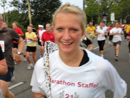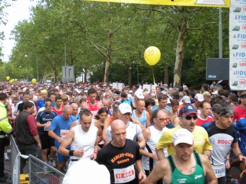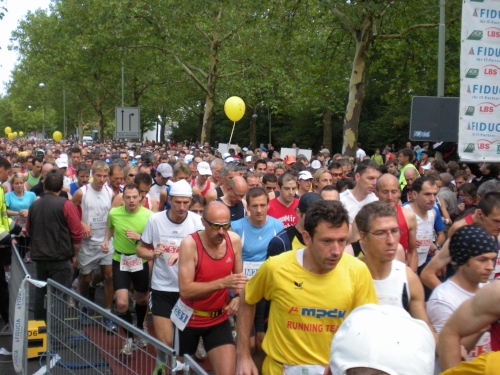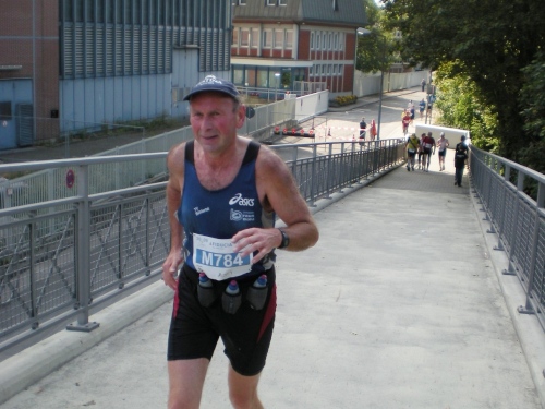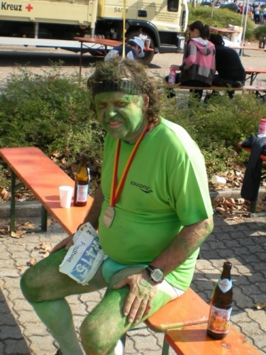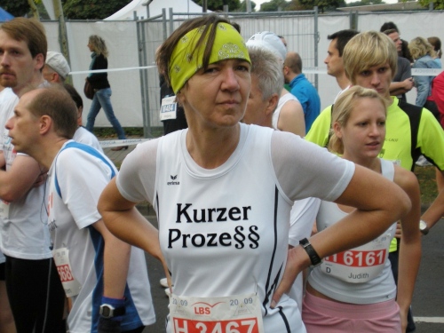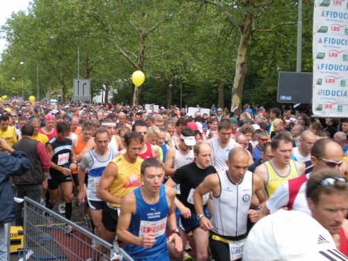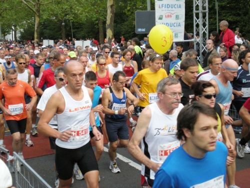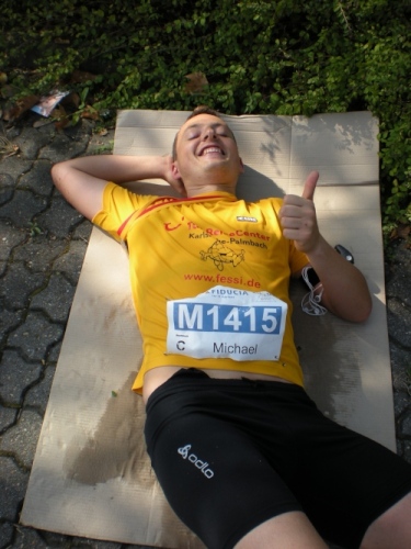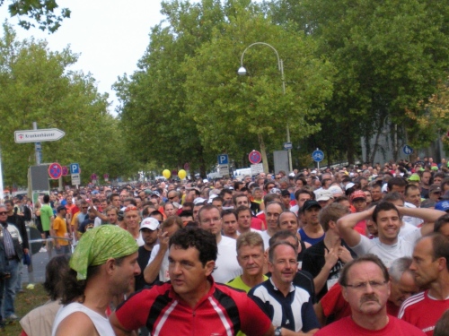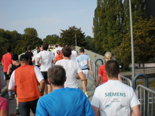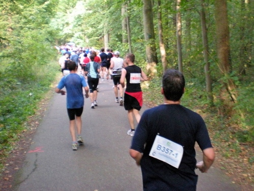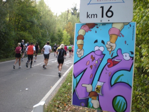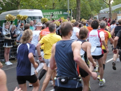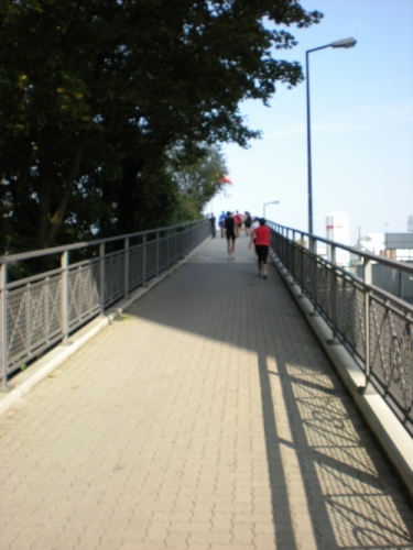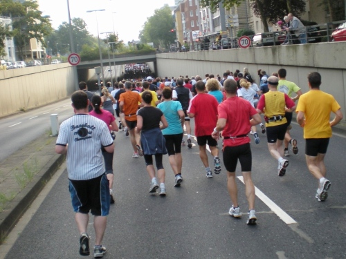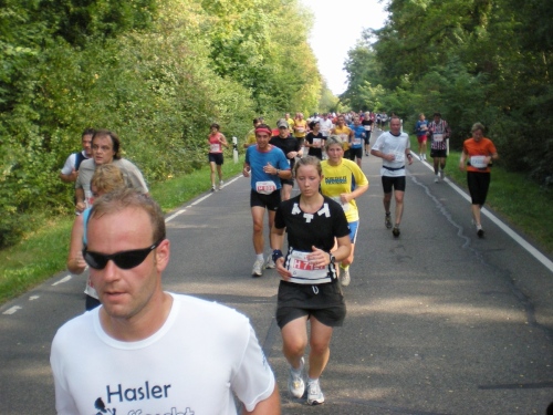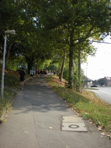 Fiduciastraße lese ich im Vorbeilaufen.Und wieder viel Musik und Verpflegungsstände. Hände recken sich mir entgegen, schon wieder wird mir Bier entgegengereicht. Irgendwie bin ich dann froh, als ich wieder über die Autobahn in den ruhigen Oberwald laufe.