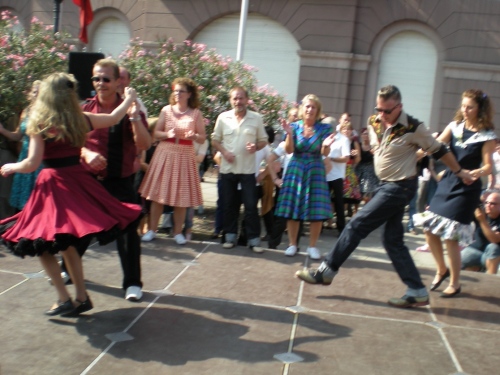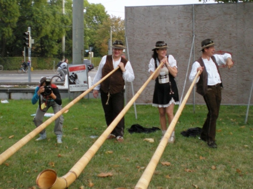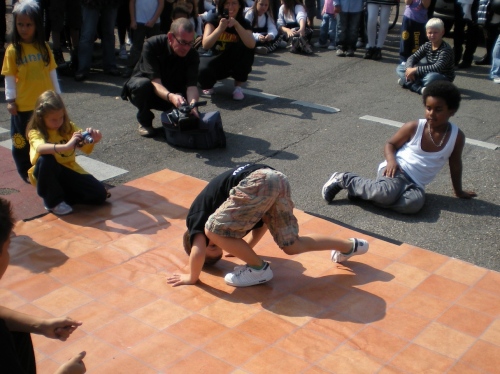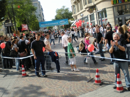 Dann geht es zum Rondellplatz. Überall Performance, Break-Dancer, Ballett und Folkloretänzer, Musik hier, Musik da - überall klasse Stimmung. Im Zenrum des Rondellplatzes steht die Verfassungssäule. Zuschauer peitschen mich vorbei.