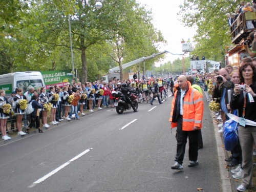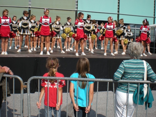 In der scharfen Rechtskurve stehen Zuschauer, nur die Square Dancegruppen beachten uns nicht, die rythmische Musik vermischt sich mit dem Gebrüll der Zuschauer, irgendwie surrealistisch-schön.