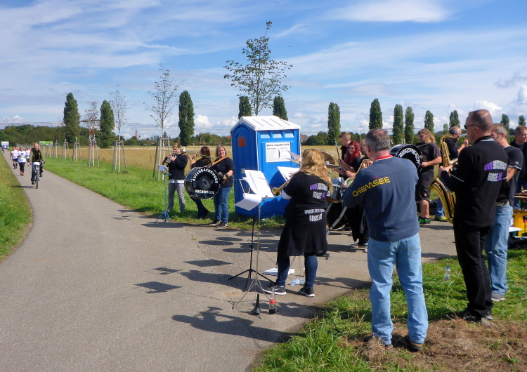 Plötzlich wird es fast mucksmäuschenstill und einsam auf der Strecke. Lediglich beim „Schupi“ werden wir mit herzlicher badischer Gastfreundschaft empfangen. Auf dem flotten Pflaster hat der Square Dance Club das sagen - hier wird getrunken, geflirtet, gefeiert. Dann geht es an der Glockengießerei vorbei an das am Rheinhafen West gelegene Heizkraftwerk. Mein Blick bleibt recht lange an diesem gigantischen Klotz kleben, zumal der Streckenverlauf zunächst erneut zu den Krautköpfen – ja sorry, den Weststädtern - führt und das Spitzenlastkraftwerk somit umrundet wird.