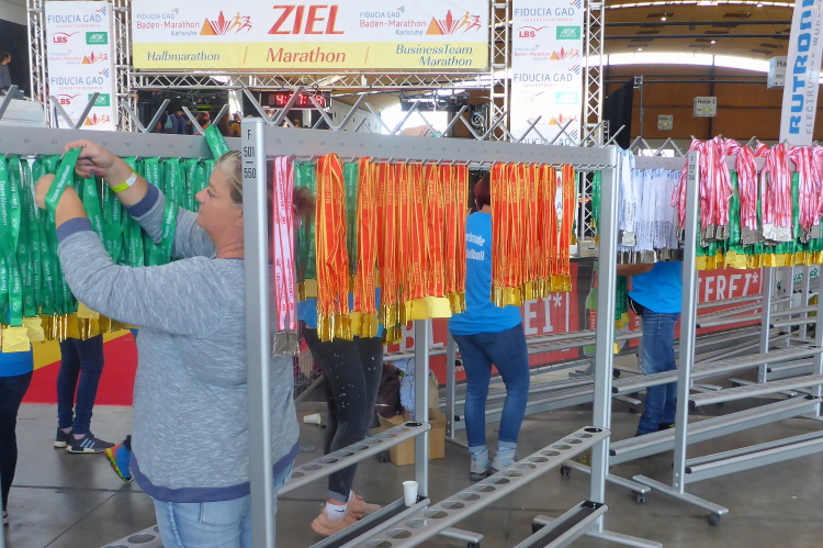 Habe ich die Karlsruher Marathonengel schon erwähnt, welche ihre Schützlinge die letzten sechs Kilometer ins Ziel begleiten? Ein weiteres, bundesweites Novum. Wer als Engel fungiert, kann jeder Läufer übrigens selbst entscheiden: Partner, Kinder, Freunde. Schließlich geht es darum, die letzten Kilometer und die Zielankunft gemeinsam freudig zu erleben. So, nun aber ab zur Straßenbahn Richtung Messegelände, die Fußsohlen kribbeln ungeduldig.