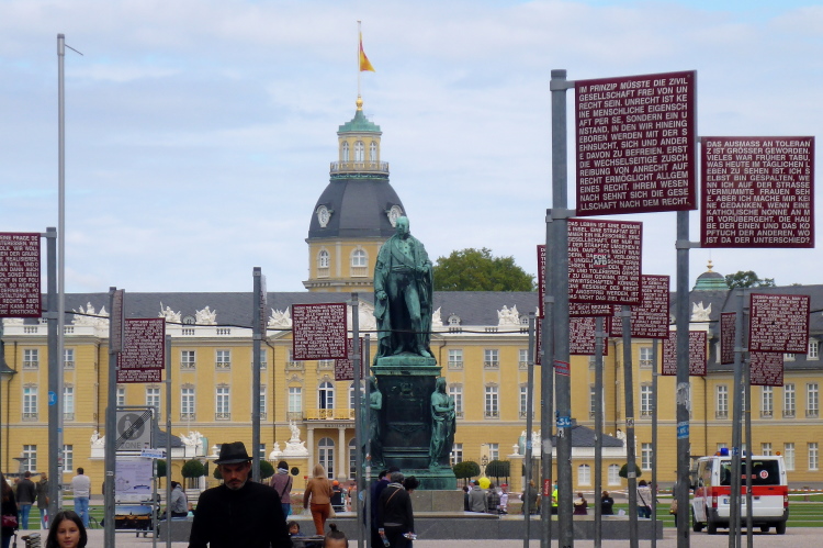 Karlsruhe. Hurra, endlich angekommen! Nach stundenlanger Zugfahrt flüchte ich regelrecht aus dem vermutlich über 30 Jahre alten, stickigen und bis zum Bersten überfüllten IC. „Da waren die DDR-Waggons ja noch bequemer...“, schimpft ein älterer Fahrgast im Abteil. Ja, die Fahrt war keine Freude. Türen öffnen quietschend. Erleichtert springe Ich aufs Gleis, schlendere fröhlich nach draußen. Die Fächerstadt entlohnt mit allerbestem Biergartenwetter an diesem herbstlichen, sonnig-warmen Samstagnachmittag. Ich schließe kurz die Augen, genieße den Moment, tanke frische Luft.